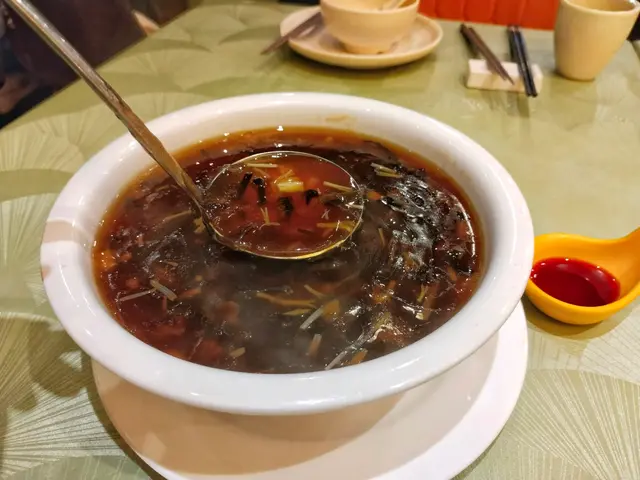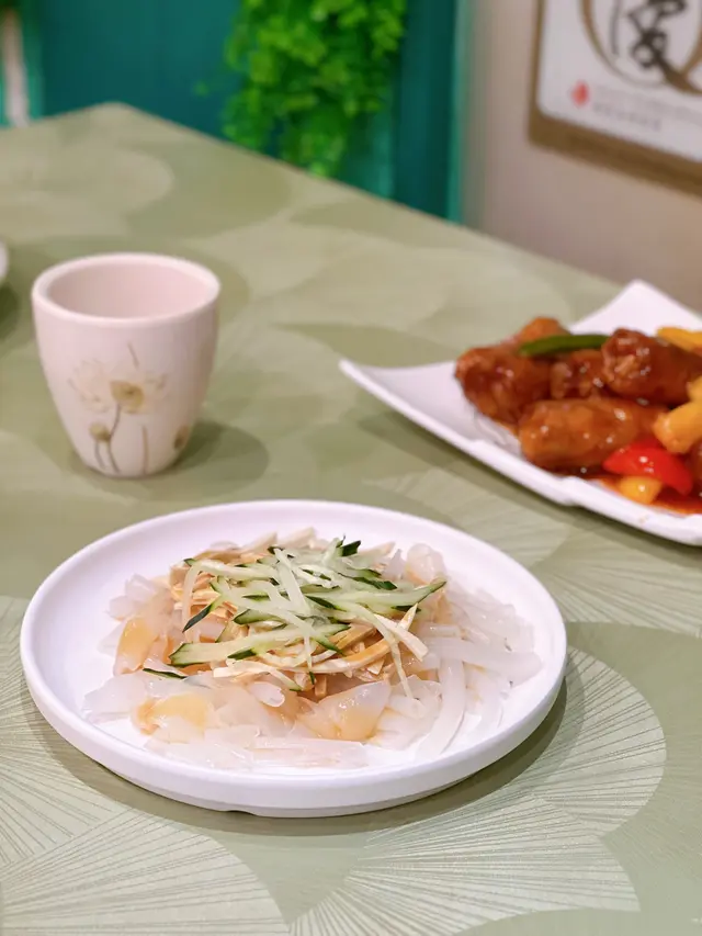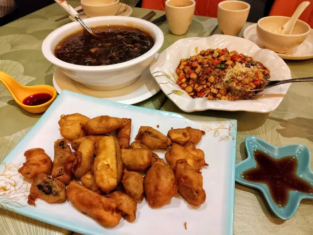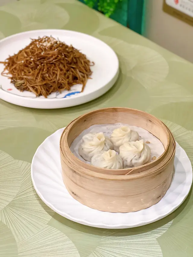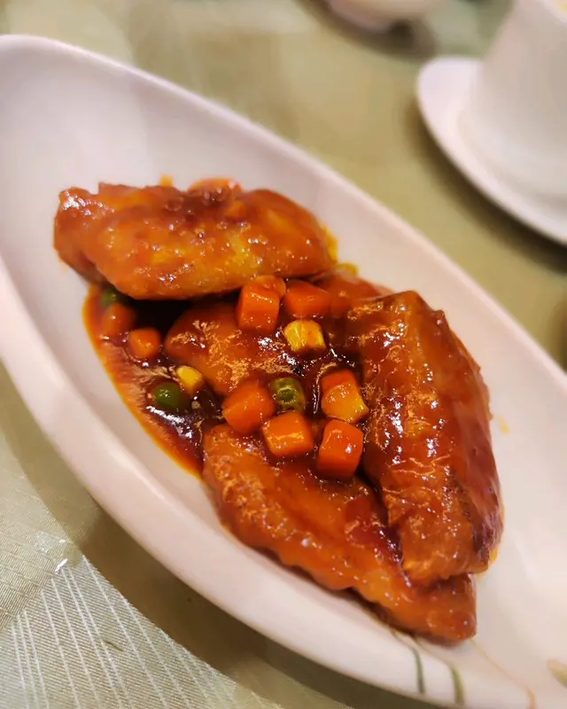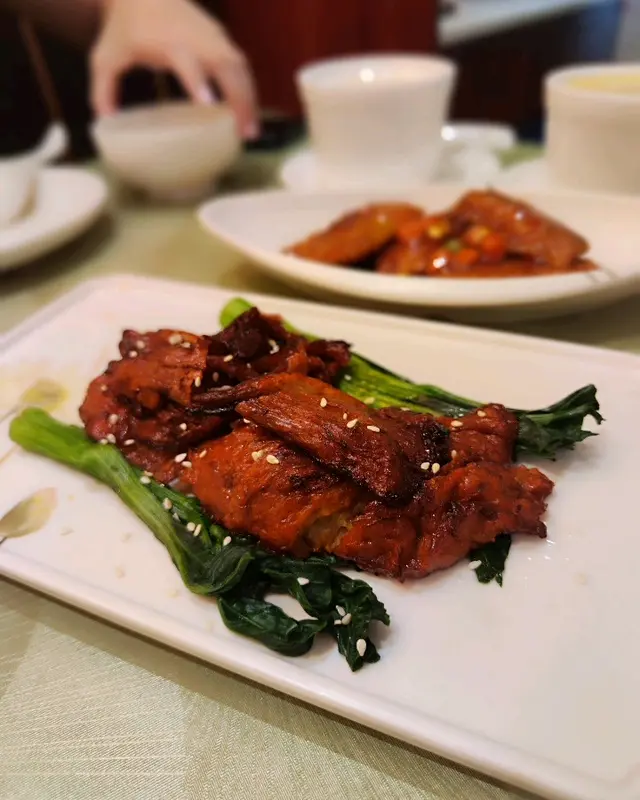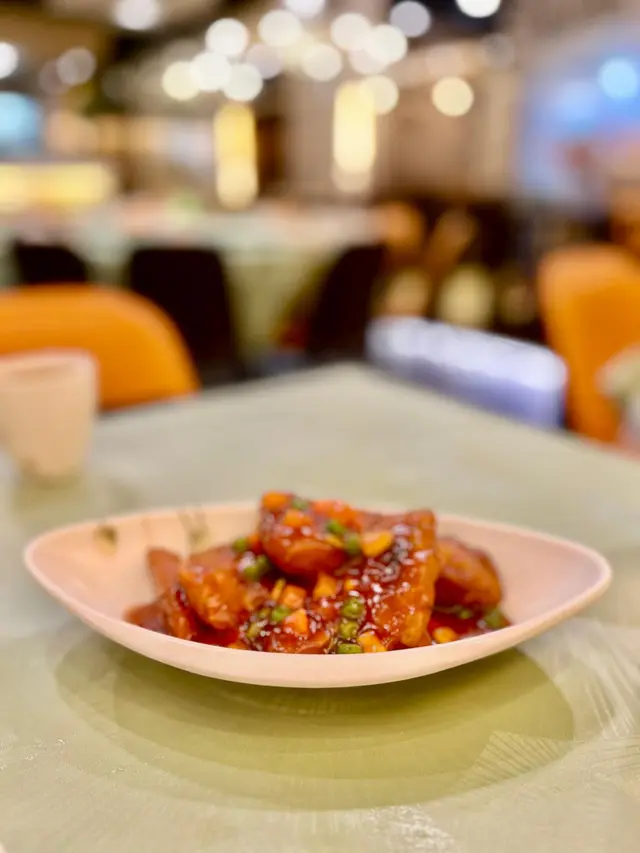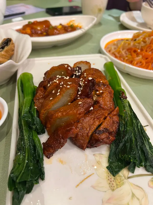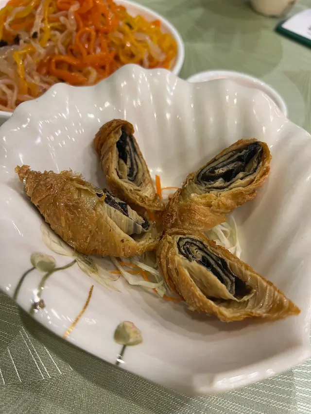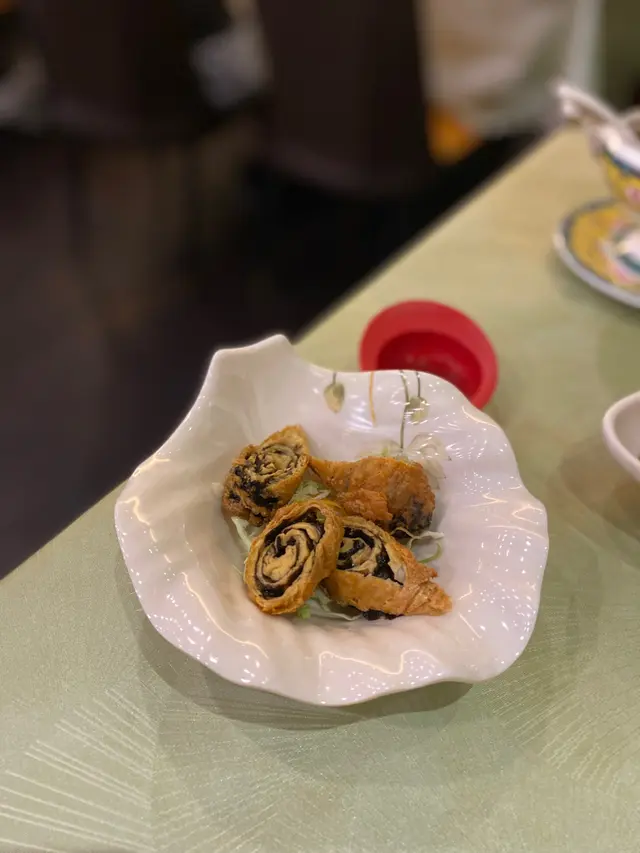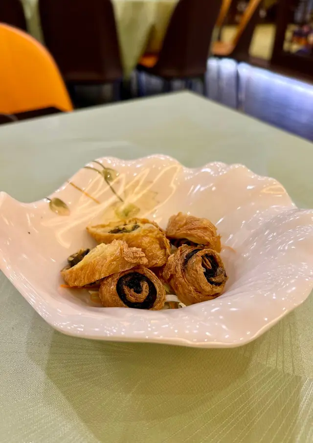 這頓素食盛宴徹底顛覆了對「齋菜」的刻板印象!「士多啤梨骨」 炸腐皮裹上酸甜草莓醬,外酥內嫩,創意滿分;「酸辣湯」香氣撲鼻,辣度恰到好處,暖胃又開胃。「福建炒飯」鑊氣十足,配料豐富,完全不輸傳統版本;「小籠包」皮薄餡多,湯汁鮮甜,竟以素高湯還原精髓! 點心更是一絕——「金絲香芋酥」層次分明,芋香濃郁;「芋泥酥魚」造型逼真,酥脆內餡綿密。壓軸的「薑汁紅棗糕」微辛帶甜,滋補又彈牙。每道菜都展現出廚師的巧思,證明素食不僅健康,更能色香味俱全,絕對值得再訪! …查看更多