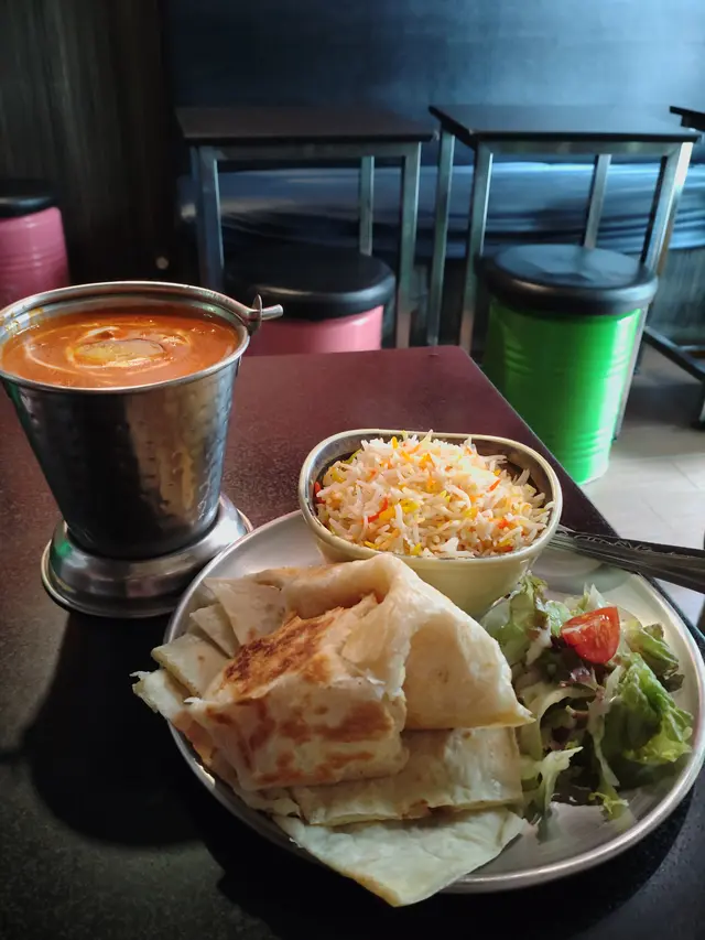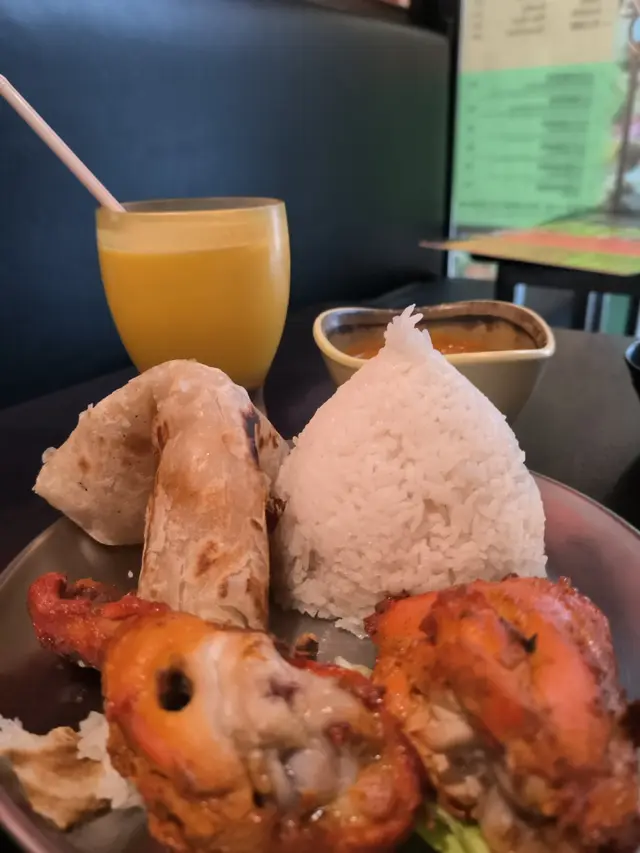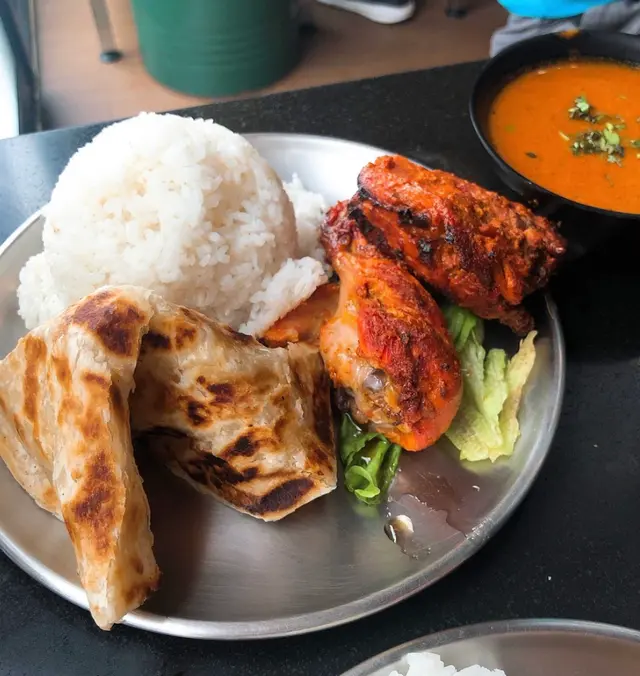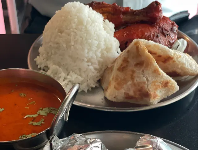 係路德圍開左好耐嘅印度菜午餐價錢經濟實惠 大部分$50-60有咖哩有餅卷 都多選擇雞烤餅卷+薯條 ($55)可以揀辣度 揀左唔辣個卷有雞肉、生菜、洋蔥、番茄同醬睇落好細份但食哂都好飽味道岩岩好 唔會好咸又唔會冇味配幾條炸薯角 都炸得幾脆另外包汽水 揀左無糖可樂印度傳統香燒雞腿•油酥餅+白飯 ($60)可以轉2塊油酥餅都得咖哩唔辣 都幾香 雞腿燒得岩岩好油酥餅勁酥脆 成個set食哂又係勁飽!整體算又平又好食 唔錯😎…查看更多