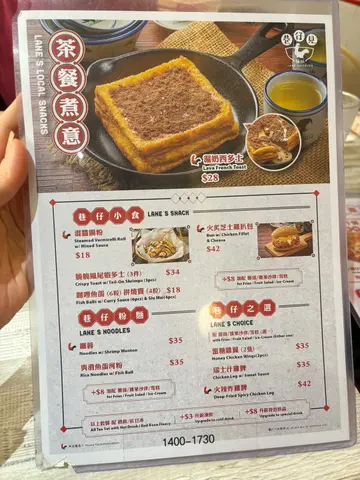 成日行将军澳广场都唔为意呢间嘢,见店内仲有位就入去食个早餐。入面嘅装潢最特别系佢啲灯,系公鸡🐓碗嚟,而且有好多盏,所以店内十分明亮。佢嘅早餐款式唔算话好多,我拣左沙嗲牛肉面配滑蛋,加杯冻斋啡。杯冻斋啡味道正常,唔会太苦,饮完后唔会有不良反应(如:头晕😵💫)估唔到佢个滑蛋整到咁靓仔,41蚊嘅早餐都要有摆盆,虽然唔系啲咩复杂嘢,但都算有心思。佢个滑蛋煎到刚好,有口感又唔会水湿湿。另外佢个多士有烘过,竟然烘到外脆内软,呢个有啲惊喜。佢个沙嗲牛肉面,牛肉都够滑同淋,亦有牛嘅香味;个沙嗲酱个咸度刚好,质素算唔错。经过网上搜寻🔍呢间餐厅嘅背景,原来巷仔见系大家乐旗下嘅餐厅,暂时只有一间店。大家乐同样有沙嗲牛肉面,但佢呢个面比大家乐嘅更加好食。…查看更多