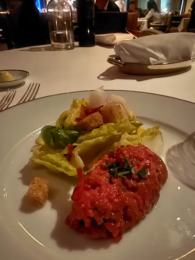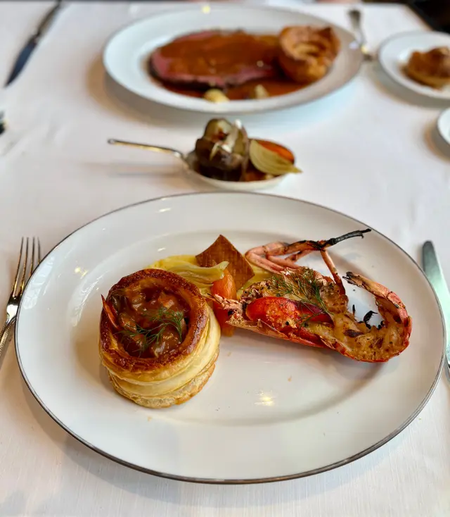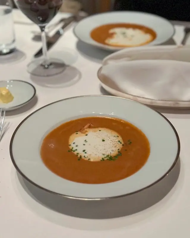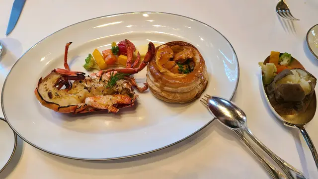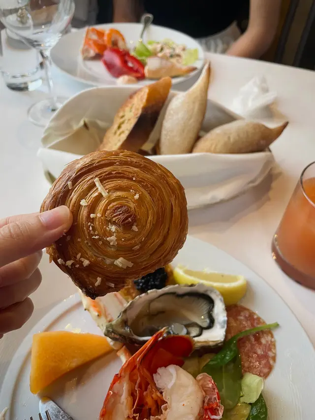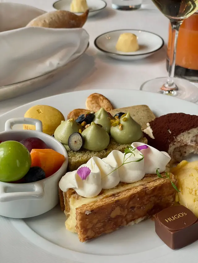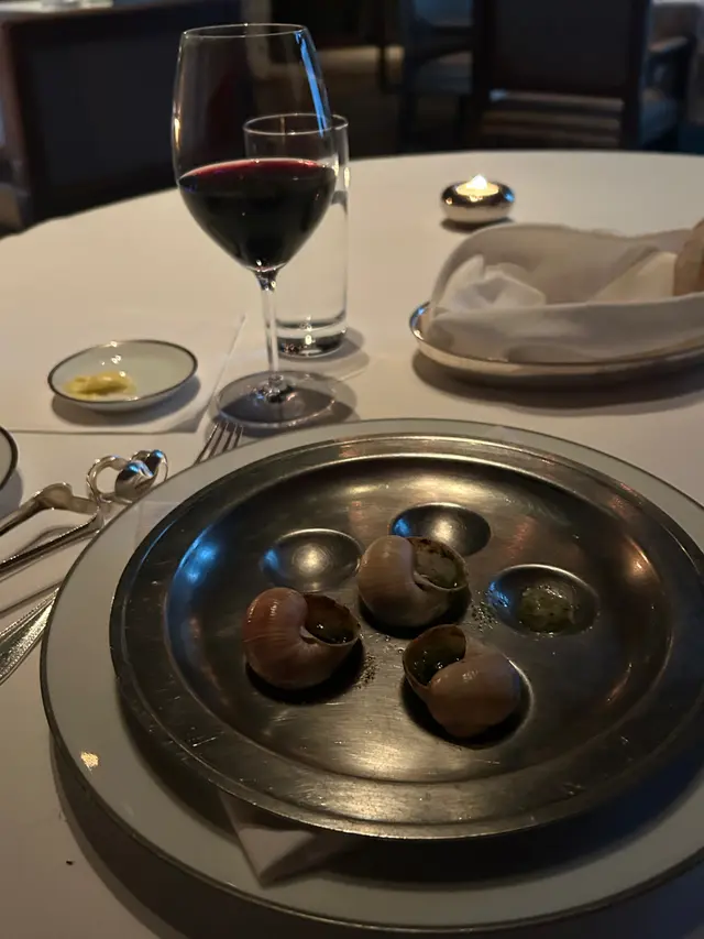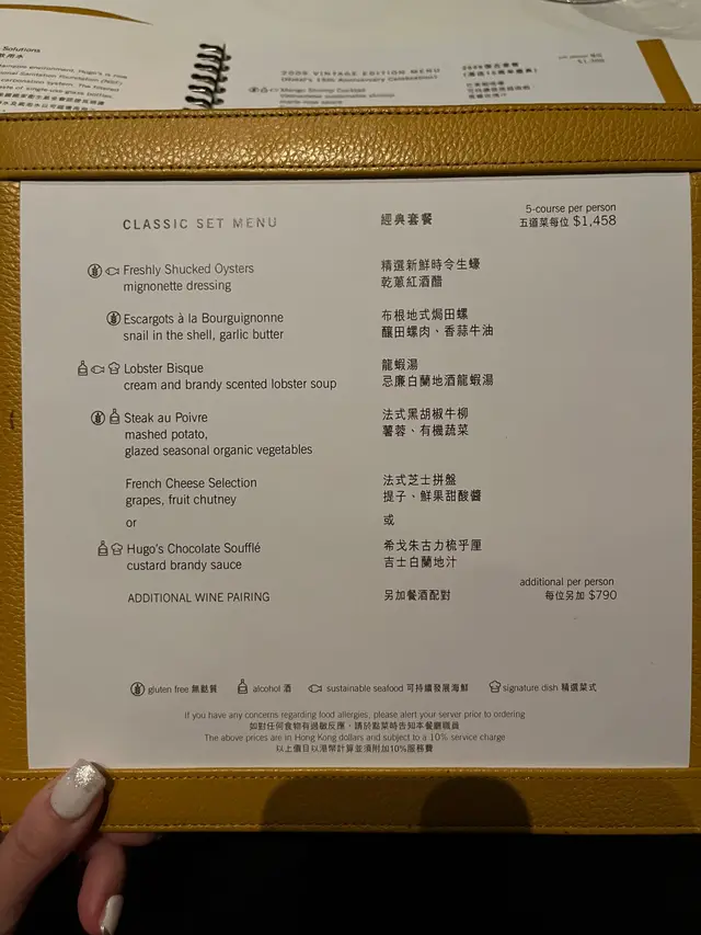 琴晚係男朋友生日,book左呢間bookmark左好耐嘅hugo’s嚟試試佢😋上網睇先知原來hugo’s歷史好悠久,1969年已經開業,可以屹立不倒咁多年必定有佢嘅原因waitress安排左我地坐round table, 坐得好舒服好闊落,成個環境氣氛都好高級唔記得左影低個menu, 我地都有想食嘅菜式,所以就叫左a la carte啲人話食西餐,一開頭嘅麵包已經會睇得出餐廳嘅水準,而呢個bread basket就真係好出色。入面有baguette, garlic bread, croissant,而我最中意個蒜蓉包,好香口同埋焗得好脆我地叫左6隻田螺share食,餐廳都好貼心,會直接幫我哋分開兩碟上。田螺就不過不失,調味唔算多,會食到田螺原味多啲,冇喺法國食個啲咁咸香煎鴨肝配上蘋果醬同多士,classic嘅配搭一定唔會出錯。個多士(冇影到)都好酥脆,成道菜每個細節都做得好好如果大家叫呢個龍蝦湯,主廚會喺你面前煮,呢個experience都幾值得一試👍🏻主菜我地叫左prime rib, 喺openrice見到大家食評都話份量好多(450g),所以我地都係兩個人share一份。主廚會喺我地面前切,仲好貼心問我地想要薄啲一大塊定係厚切每人半塊,我地就揀左厚切,份量真係好多🙀肉質軟熟,油脂同肉比例平均,好重肉味👍🏻我地仲加左兩個side dishes, 分別係薯蓉同忌廉菠菜,都好好味最後叫左個蘋果撻做甜品,唯一美中不足係我喺openrice booking request左要寫happy birthday, 但最後個甜品係冇寫嘅🥺最後仲送左個好fancy嘅chocolate vanilla ice cream ball,都不錯-總結:openrice book枱a la carte有8折,最後連加一兩個人食左$1900,以呢個食物質素同餐廳氣氛,我覺得係非常之抵👍🏻我地兩個人都食到好飽,細食嘅朋友我諗叫少一至兩個appetizer/dessert都夠食…查看更多