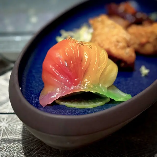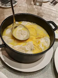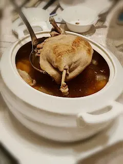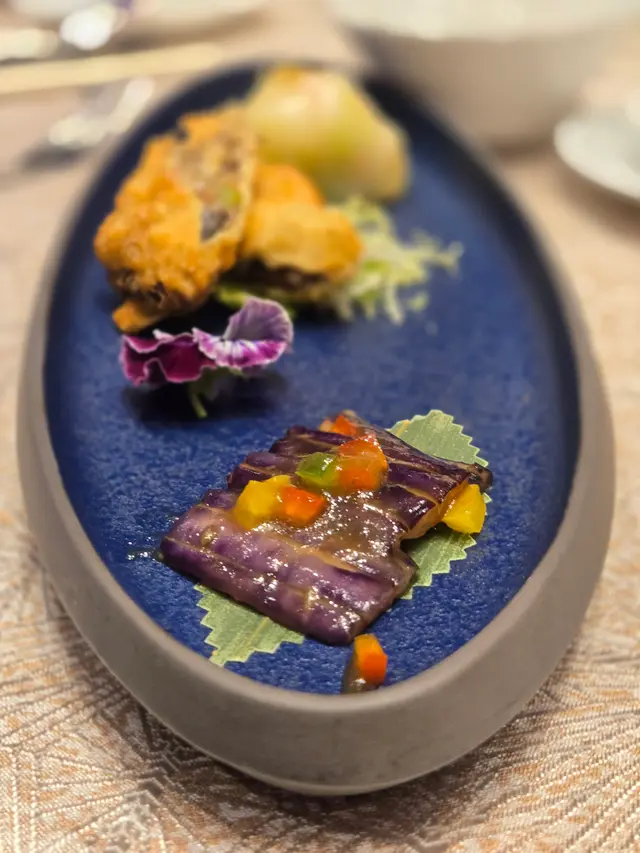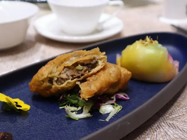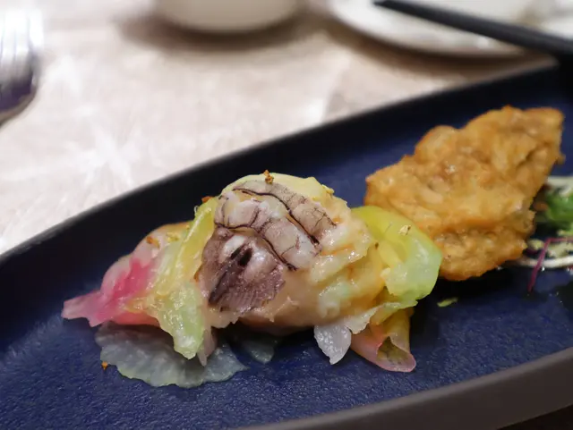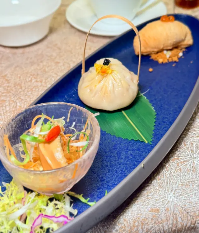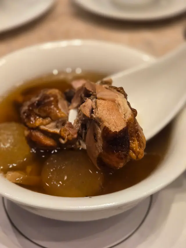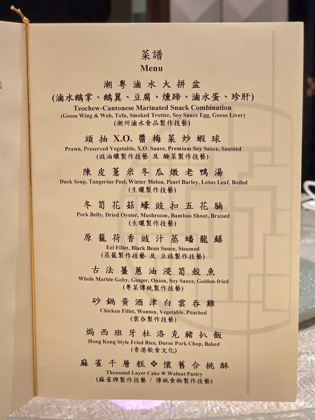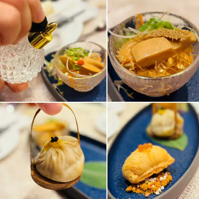 秋風送爽的日子來臨了!正是代表秋冬美食推出的好時候,當中大閘蟹是我非常期待的秋冬美食,這天終於要迎來金秋第一蟹。這夜來到帝京酒店內的帝京軒!品嚐剛推出期間限定的「金秋.蟹悅宴」。大閘蟹寒涼搭暖胃的紹興酒是絕配!我們選了這枝越洲家釀十年白瓷瓶!酒質醇厚甘鮮回味悠長,酒味則醇厚兼芬芳馥郁,加入了酸甜的話梅風味更加絕美。八道菜的蟹宴由頭盤藝粹揭開序幕!內裏包括有醬香大麴溏心鮑、生拆蟹粉小籠包及蟹油元貝千絲酥。醬香大麴溏心鮑!吃前先噴上陣陣酒香充滿儀式感,以醬油及大麴酒來冰鎮鮑魚,吃下口感香軟帶有酒香非常迷人。生拆蟹粉小籠包!小籠包夾起沒有穿破外皮合格,內裏的肉球鬆化還有甘香的生拆蟹粉,一口咬下肉汁豐盈鮮味滿分。蟹油元貝千絲酥!鮮甜的元貝粒混上邪惡的蟹油變得份外誘人,配搭外層酥香不油膩的酥皮口感非常豐富。鮮姬松茸蟹皇虎蝦球!虎蝦球非常彈牙爽口而且充滿鮮味,有蟹粉作後盾帶來濃濃的鮮香味,別忘掉畫龍點睛的鮮姬松茸那份菌香令到鮮味更加提升。湯羹有兩款選擇而我看中了鮮味又養顏的蟹肉花膠燴燕窩!濃稠的高湯內盡是梳梳鮮味蟹肉,內裏夾雜了爽滑花膠及養顏燕窩,貼心地以小火爐上檯保持溫度每一口也熱騰騰吃得非常舒心。如果大家喜歡吃蛇羹可以選擇菊花五蛇燴花膠同樣滋補。終於來到我心心念念的大閘蟹!這夜每人也可以得到一隻清蒸江蘇大閘公蟹,每隻約重六兩身形挺健碩耶。餐廳有非常貼心的拆蟹服務!而我個人比較喜歡自己蟹自己拆。我這一隻江蘇美男子生前也很養精蓄銳!黃、白羔也一應俱全填滿蟹身足夠慰藉我思蟹之情。我喜歡一次過將所有蟹肉蟹羔拆好,然後加入香甜的蟹醋一次過品嚐,那份甘香滋味的滿足感真不能言喻。吃過寒涼的大閘蟹之後服務員為我們送上暖胃薑茶。蝦籽魚唇軟骨伴鮮鹿茸菌!這道充滿骨膠原的菜式用上了魚唇來炮製,吃下去口感非常軟糯黏嘴,配搭以鮑魚汁炮製的爽脆鹿茸菌,兩者形成強烈對比口感非常有趣。龍蝦湯蟹餅五穀苗!菜式賣相很艷麗非常吸引眼球,墊底的是以萵筍粒炸米及蟹肉製成的米餅,面頭放上一枚鮮嫩煎帶子,配搭帶上微辣鹹鮮的龍蝦湯濃郁味道叫人回味。這天菜式非常香濃來客清爽的上湯浸菠菜苗,可以好好清爽口腔迎接甜品的來臨。薑茶金薯芋圓小丸子!香辣薑茶是我的最愛絕對沒投訴,加上有粉淋的金薯添加不少口感也不錯。金粉流星可可脆脆!口感香脆帶滿滿的朱古力香氣好吃啊,兩款甜品也很有新鮮感用來代替傳統的薑茶湯圓也不錯。「金秋.蟹悅宴」收費為$838/位(兩位起),由即日起至12月18日於帝京軒及獅房菜同步供應。…查看更多