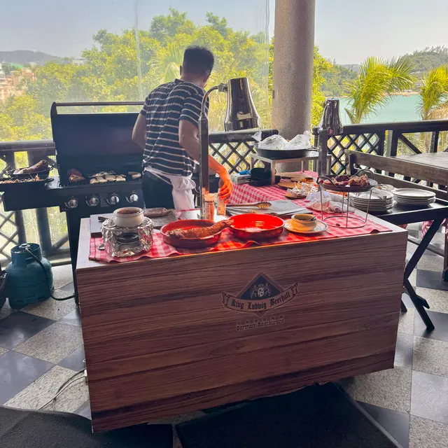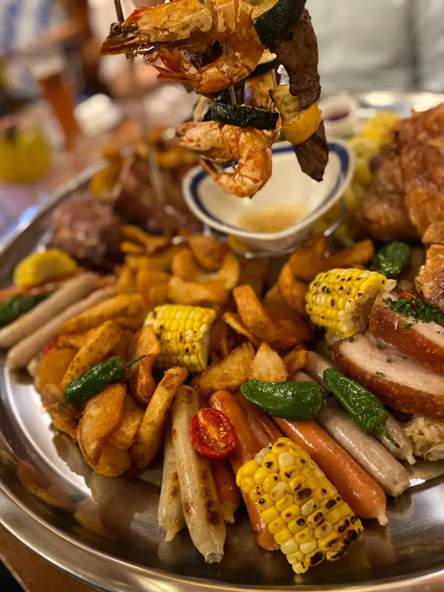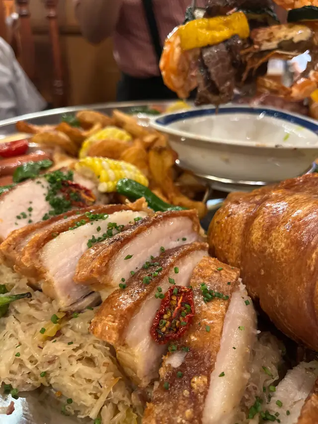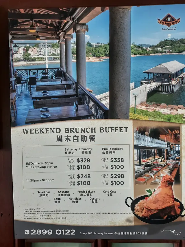 再見了,我一早訂了座,同時也是第一位入場,因此拍下每個角落的照片作為紀念。這間餐廳的裝潢實在美輪美奐。各行各業順利度過疫情,本以為前路一片光明,但開關後,港九新界的店鋪紛紛歇業,不少業者不得不收攤,看到這情況真的令人心痛!今天是餐廳的最後一天營業。餐廳提供室內及室外座位,室外座位面向海景,可以俯瞰赤柱美麗的海景,位置絕佳,讓用餐的同時也能享受海景的美妙。至於食物,餐廳最著名的就是德國豬手,外皮香脆,肉質鮮嫩,另一道招牌菜則是德國香腸,美味非凡。頭盤包括凍海鮮、沙律、火腿、南瓜火腿配鷹嘴豆、凍蝦及青口等。主菜有青口、雞翼、豬肋骨、意大利粉、酒煮蜆、薯角等,同樣美味。室外部分設有燒菠蘿、腸仔、牛扒,特別推薦燒菠蘿,非常美味。蘑菇湯搭配各式麵包,口感宜人。除此之外,還有多款甜點,如蛋糕、布丁、啫喱、曲奇餅,以及兩款口味的雪糕,分別是朱古力和芒果口味,深受大眾喜愛。由於是最後一天營業,全店只提供自助餐,不需再煩惱點菜的問題。職員們都感到遺憾,因為這是他們在這裡工作的最後一天。…查看更多