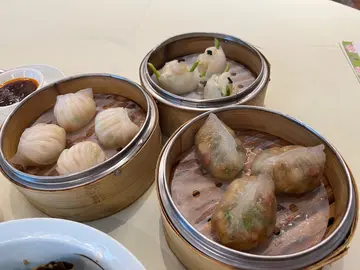 This Chinese restaurant inside the Royal Park Hotel in Shatin was not my first choice but for the convenience. The food and service was at best mediocre. The beef rice flour roll was ruined by the extremely strong stinging taste of the Chinese onion. The mini egg tarts were not aesthetically pleasing but were well baked, warm and not too sweet. The baked BBQ pork bun looked dry but tasted fine. There was nothing to write home about for the shrimp dumplings. The abalone on the siu mai was a nice touch as it was quite moist and chewy and blended well with the taste of siu mai. The soup dumpling was good; even for me a non-fan, the dumpling coat was just thick enough to contain soup and the pork was fresh and sweet. $220 per capita made this a so-so lunch but the location made it worth our while. …查看更多