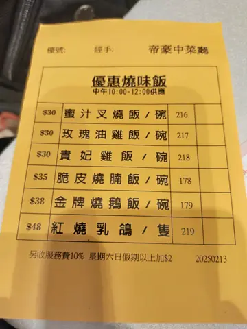 和几位都是对食物很有要求的朋友聚餐,今次选址到新蒲岗帝豪中菜厅 ,预留了奄仔蟹,苏鼠,其他现场再加。先来前菜,椒盐豆腐,卤水鹅掌送酒再来奄仔蟹,鲜甜多膏,油盐煮不太油不太咸,味道刚刚好。然后足料冬瓜盅,有鲜蟹肉,金华火腿,瑶柱,肉粒,少不了莲子和夜香花,不用多讲已知味道清甜,很消暑。吃蟹时,便叫厨房预备冬瓜盅和蒸鱼,一道道分开上便不会摆冻了。朋友们很有要求,一早订定了海鱼苏鼠,蒸得刚刚好,4人冇停口份量足,不用你推我让,大家都吃得满足。之后叫了澳龙煎面底,这个面没有枧水味,原来是蛋面,脆到卜卜声够干身,加上另上的龙虾汁,龙虾汁沾上干面,入口满满龙虾精华,继续吃到停不了口。然后到甜品时间,可以开启另一个胃,一般酒楼甜品只有红豆,绿豆沙,这里有麦米糖水,足料有咬口,不太甜,比糖水店更好味。另外,椰果包是热吃,外面包著椰丝,内里是蒸糯米包着椰果,软绵绵的,又吃了一整个。最后,吃完蟹来个姜汁糕热吃,整餐饭圆满丰足。四位每人7百多,好品质厨师有水准,朋友吃完没投诉,异口同声说比外面什么什么大集团,根本另一层次。私心推介,嘉许厨师,现在营商环境困难,难得找到一间好的食店,留港消费的你不妨一试。…查看更多