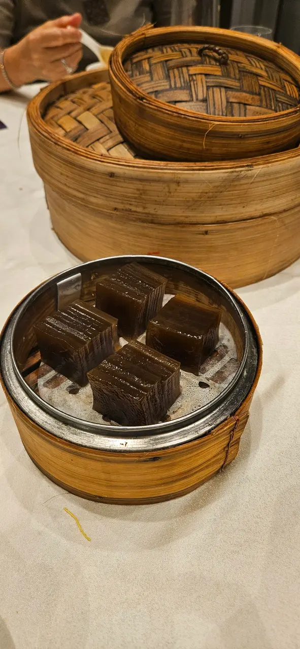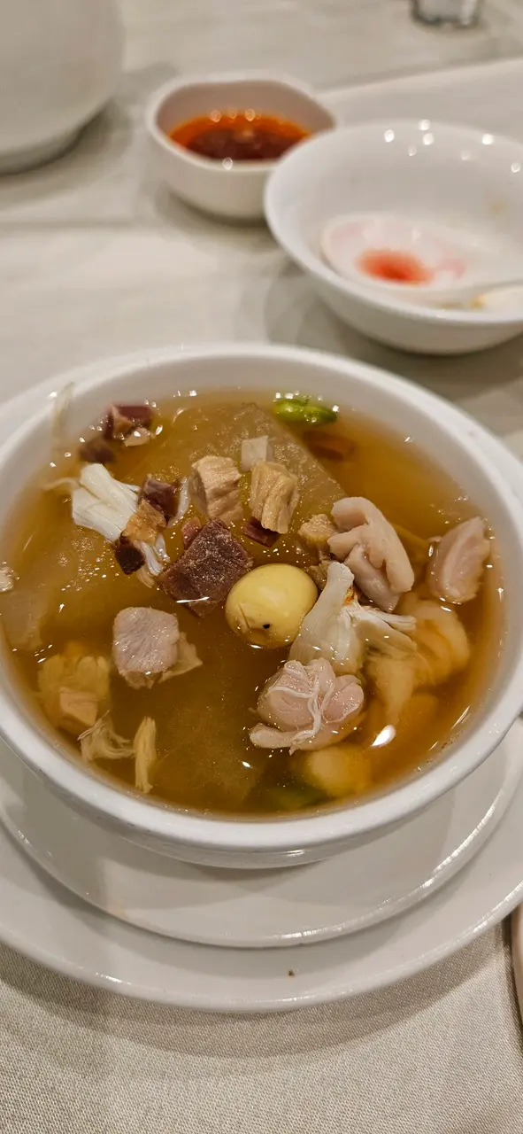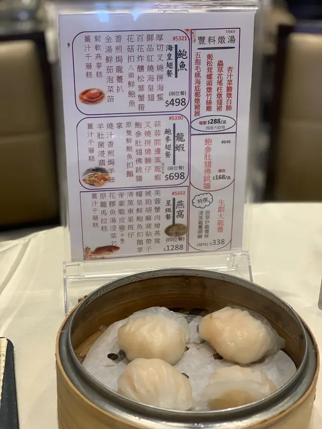 和幾位都是對食物很有要求的朋友聚餐,今次選址到新蒲崗帝豪中菜廳 ,預留了奄仔蟹,蘇鼠,其他現場再加。先來前菜,椒鹽豆腐,鹵水鵝掌送酒再來奄仔蟹,鮮甜多膏,油鹽煮不太油不太咸,味道剛剛好。然後足料冬瓜盅,有鮮蟹肉,金華火腿,瑤柱,肉粒,少不了蓮子和夜香花,不用多講已知味道清甜,很消暑。吃蟹時,便叫廚房預備冬瓜盅和蒸魚,一道道分開上便不會擺凍了。朋友們很有要求,一早訂定了海魚蘇鼠,蒸得剛剛好,4人冇停口份量足,不用你推我讓,大家都吃得滿足。之後叫了澳龍煎麵底,這個麵沒有梘水味,原來是蛋麵,脆到卜卜聲夠乾身,加上另上的龍蝦汁,龍蝦汁沾上乾麵,入口滿滿龍蝦精華,繼續吃到停不了口。然後到甜品時間,可以開啟另一個胃,一般酒樓甜品只有紅豆,綠豆沙,這裏有麥米糖水,足料有咬口,不太甜,比糖水店更好味。另外,椰果包是熱吃,外面包著椰絲,內裏是蒸糯米包着椰果,軟綿綿的,又吃了一整個。最後,吃完蟹來個薑汁糕熱吃,整餐飯圓滿豐足。四位每人7百多,好品質廚師有水準,朋友吃完沒投訴,異口同聲說比外面什麼什麼大集團,根本另一層次。私心推介,嘉許廚師,現在營商環境困難,難得找到一間好的食店,留港消費的你不妨一試。…查看更多