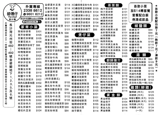 師傅仔 (金碧閣) (长沙湾) 网址: https://s.openrice.com/QrLS0yGG3W0 地址: 香港長沙灣元州街482-492號金碧閣地舖 电话: +852 23388612