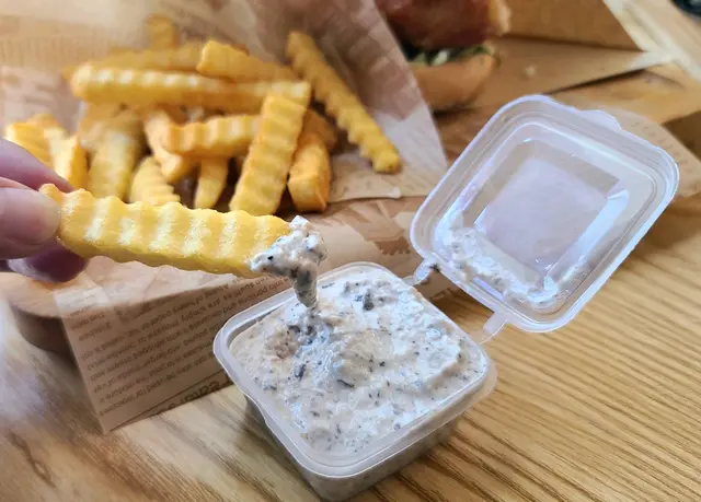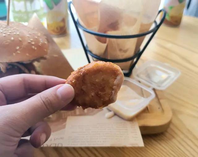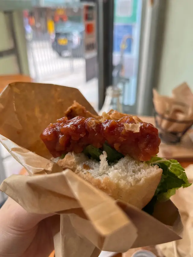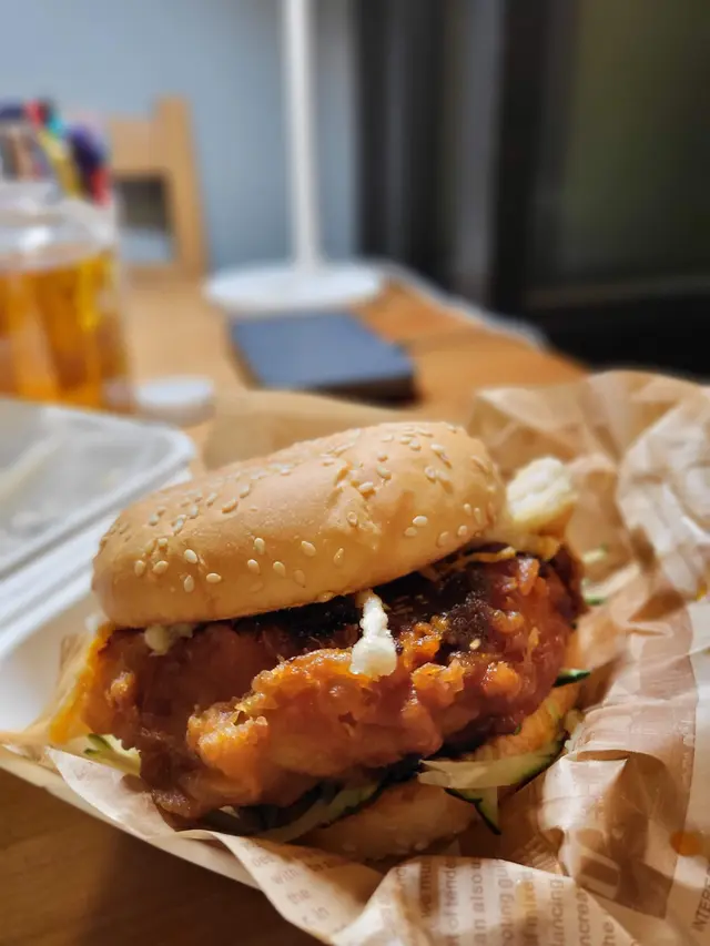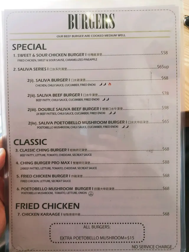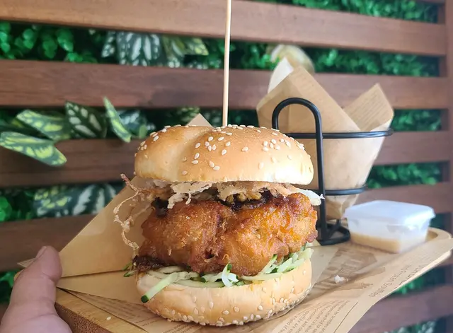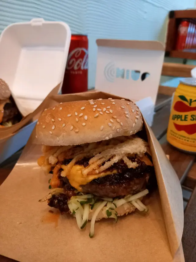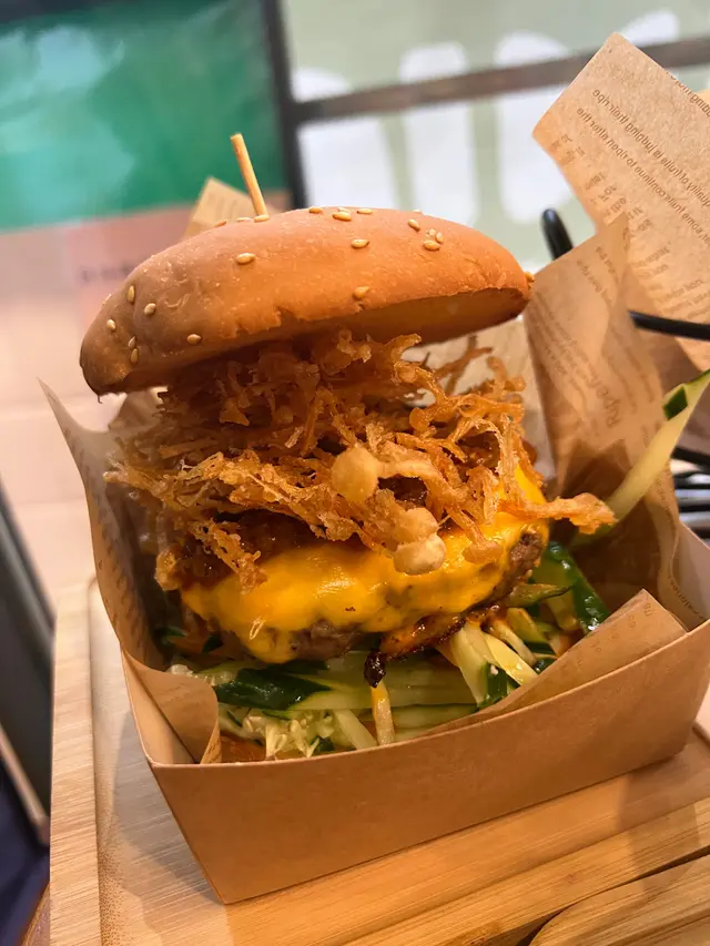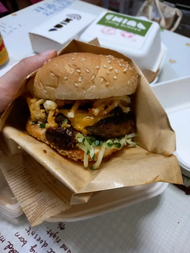 自從開學之後,港大站附近既餐廳都勁多人,所以有時都寧願行遠少少搵野食。估唔到俾我搵到呢間fusion burger 店都幾特別! 特色系列一定要試下,中式小菜漢堡有咕嚕雞、口水雞等等,我就試左個口水牛漢堡~牛漢堡香濃多汁又夠厚,煎得岩岩好,同埋有D炸脆左既金針菇同勁多青瓜絲,多重口感,有驚喜既體驗! 微微香辣感非常惹味。上下兩塊包都係好鬆軟,外層烘烤過脆口。絕對係影相同食都係又靚又正! 唔食辣既可以選經典師兄漢堡,同樣係厚厚既牛肉漢堡,有蕃茄生菜再加上千島醬,好fresh 唔會有膩感。師樂雞~真係好耐冇食過呢款雞塊啦,估唔到係呢間burger店搵到,一定要嗌啦! 加埋柚子醬酸酸甜甜好好味! 師炸雞,新鮮雞肉既味道,用秘製醬料醃過,炸出黎特別香同鮮嫩!再加罐可樂同蘋果梳打,非常爽! 年輕人主理既小店,值得支持!…查看更多