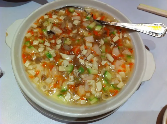 這間不是齋菜, 是素食, 食品不錯, 價格也合理, 而且坐得也算舒服, 最低讚是每人送了一碗西米露, 不太甜, 而又好味...不過, 以素菜來講, 調味料似乎重了一點;另外也見識到香港人說話聲音把素菜餐館變成酒樓, 可能是人太多或台同台之間太近了...再講, menu上也沒說明有辣椒成份, 我朋友食了才知道辣, 不夠細心...侍應服務值80分, 食物水準有70分, 價格合理, 低讚...…查看更多