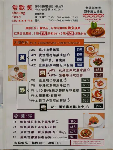 常歡笑 (中环) 网址: https://s.openrice.com/QrLS00Vm800 地址: 香港中環威靈頓街18號地下 电话: +852 68020818