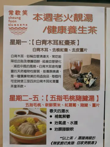 以前食糖水都唔会特登拣啲滋补嘢但而家一见到果啲乜桃胶呀花胶呀即两眼放光 几时都话中女吾补好易老转季更加要整番个花胶炖鲜奶补补佢原本口痕净系想食个糖水但发觉买任何一个饭 糖水半价$34蚊食到花胶炖鲜奶好过同样价钱饮果啲糖精珍珠奶茶常欢笑绝对系中环人仕佳音成日买外卖返公司边食边做果班更加要对自己好啲 外卖都可以有啲要求嘅又或者收工懒得煮喺哩度买只海南鸡加个炖汤返去烚个菜 健健康康又一餐 真正蔗渣既价钱烧鹅既味道 ◾◾◾◾◾◾◾◾◾◾◾◾地址:常欢笑中环威灵顿街18号地下电话 : 68020818