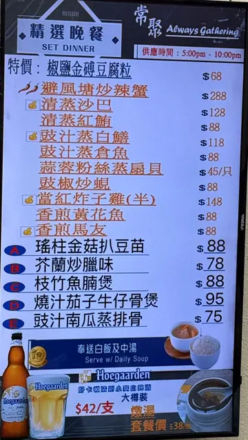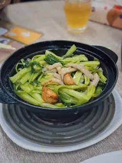 呢到系一间好有街坊feel嘅茶餐厅,装修唔花巧,但胜在够地道、够实在。今次同朋友黎简单食餐饭,水准都唔错,啱晒一班friend或者屋企人一齐聚餐,食得开心又唔伤荷包😉店铺空间都几大,干净企理👍🏻金银蛋浸时蔬($78):呢个金银蛋浸白菜仔真系稳阵之选,白菜仔爽口嫩滑,吸晒咸蛋同皮蛋嘅精华,汤底清甜唔会太咸,食落去好舒服又唔腻,啱晒开胃😉凤梨咕噜肉($85):咕噜肉系港式经典,呢度做得几出色,炸得外脆内嫩,唔会太厚粉,凤梨甜甜地,酸酸甜甜好开胃,酱汁挂得匀,送饭一流😁椒盐鲜鱿($98):鲜鱿炸得香脆,外层有椒盐香气,内里仲保持弹牙,唔会炸到干晒,香口惹味,食到停唔到口,配啤酒简直系绝配🤤啫啫猪润鸡煲($88):呢个啫啫煲上枱𠮶阵香味四溢,猪润够滑冇腥味,鸡件入味,煲底仲有啲洋葱葱粒爆香,食落去暖笠笠,好有镬气👍🏻豉椒炒蚬($88):蚬够新鲜,冇沙,豉椒炒得够香,辣度啱啱好,唔会抢味。汁料挂得好匀,啖啖都系咸香刺激,送白饭真系冇得输😎大合照😍蓝妹啤酒($36):食咁多重口味𩠌,梗系要配返支冰冻蓝妹!清爽易入口,啱晒配椒盐鲜鱿同炒蚬,饮完即刻解腻,气氛都升温🤩呢到叫小食都会送白饭+老火靓汤,同埋+$8仲有餐饮,白饭粒粒分明,唔会湿笠笠,啱晒捞汁。是日例汤汤色清澈,味道几晒甜冻柠茶(+$8):茶底够浓,柠檬切得厚,酸味突出,唔会死甜,系港式茶餐厅嘅灵魂饮品😄常聚小厨真系做到港式茶餐厅嘅精髓,𩠌菜够镬气、味道够地道,价钱合理,份量唔欺场。无论你系想食返啲怀旧味道,定系同朋友聚餐吹水,呢度都系一个好选择。食完真系会想讲句:「下次再聚啦!又可以chill chill 佢~啤啤佢~~」🥰补MENU…查看更多