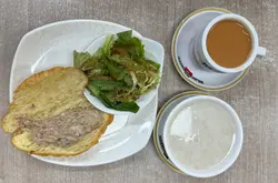 無糖高纖蛋白鮮奶麥皮配吞拿魚牛角酥,熱奶茶$39 -