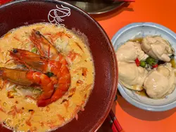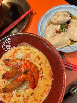 我非常喜欢吃拉面坊间有不少出名的过江龙也未能得我欢心!早前吃过一间非常用心的本地小店,品尝到店家用心的真材实料好味道。拉面店位处尖沙咀漆咸围内的幕多!拥有超养眼的红色店面行过绝对不会错过的。这天下午两时许来到仍然全店满座!幸运的是未有人龙所以等了约10分钟便可入座,期间店员先给我们餐牌点选食品,餐牌内容非常简单绝对是吃专注。店内设有十多个座位于拉面店来说算坐得挺舒适,放在台面的货柜纸巾盒也劲可爱啊。拉面店每日也有精选美食这天有蛏子及贵妃蚌,实在太合我们口味一于全点上。不消一会所点美食全部来到我们面前!肚子已经非常雀跃地打鼓我们也不客气要大快朵颐了。精选海鲜小食各$38/份全以酱油来调味!贵妃蚌和蛏子也没有华丽卖相,看似简单但吃下爽口弹牙加上幽幽的酱油提鲜是好吃的。拉面独孤一味只售酱油虾浓汤面$118但足以令我回味无穷。拉面上台的时候会在席前淋上自家提炼的虾油!红彤彤的色泽非常亮丽有了它能增味添香不可多得的小确幸。先呷口用上超过40斤的虾来炮制的浓汤!浓稠的口感令嘴巴充斥幸福感,超鲜香确实真材实料是没法输味道。溏心蛋$16/只浸得够入味蛋香也迷人!橙红色的蛋黄流心程度挺合我们心意,虽然不便宜但绝对不错吃。店家采用日本曲面喜欢它没有讨厌的碱水味!软硬适中的口感吃得我非常惬意。拉面内附上三只已去壳的酱油虾所以吃得特别畅快!点到即止的酱油香加上新鲜爽弹口感带来满分鲜味。有质素的拉面店绝对值得连汤也喝光!幕多是少数我会清碗的其中的一间。只是百多元一碗的拉面有这样高质素,吃得出老板非常用心去炮制,希望小店越做越旺生意兴隆我们才可长吃长有喔。…查看更多