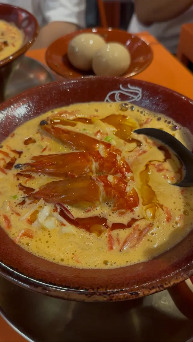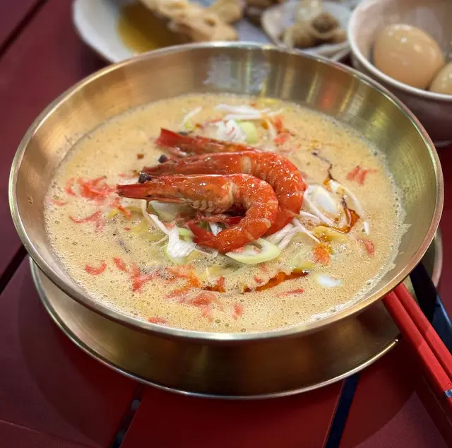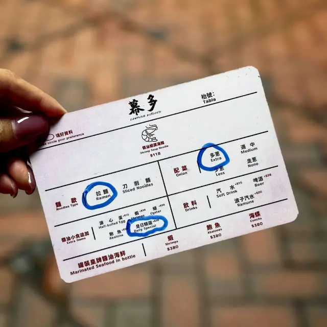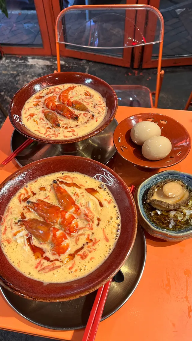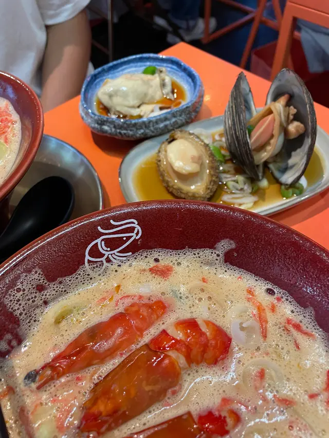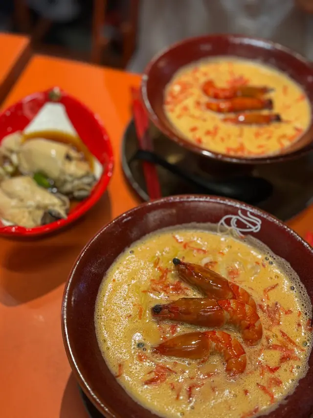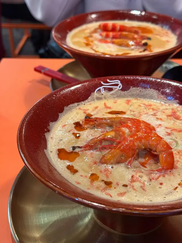 我非常喜歡吃拉麵坊間有不少出名的過江龍也未能得我歡心!早前吃過一間非常用心的本地小店,品嚐到店家用心的真材實料好味道。拉麵店位處尖沙咀漆咸圍內的幕多!擁有超養眼的紅色店面行過絕對不會錯過的。這天下午兩時許來到仍然全店滿座!幸運的是未有人龍所以等了約10分鐘便可入座,期間店員先給我們餐牌點選食品,餐牌內容非常簡單絕對是吃專注。店內設有十多個座位於拉麵店來說算坐得挺舒適,放在檯面的貨櫃紙巾盒也勁可愛啊。拉麵店每日也有精選美食這天有蟶子及貴妃蚌,實在太合我們口味一於全點上。不消一會所點美食全部來到我們面前!肚子已經非常雀躍地打鼓我們也不客氣要大快朵頤了。精選海鮮小食各$38/份全以醬油來調味!貴妃蚌和蟶子也沒有華麗賣相,看似簡單但吃下爽口彈牙加上幽幽的醬油提鮮是好吃的。拉麵獨孤一味只售醬油蝦濃湯麵$118但足以令我回味無窮。拉麵上檯的時候會在席前淋上自家提煉的蝦油!紅彤彤的色澤非常亮麗有了它能增味添香不可多得的小確幸。先呷口用上超過40斤的蝦來炮製的濃湯!濃稠的口感令嘴巴充斥幸福感,超鮮香確實真材實料是沒法輸味道。溏心蛋$16/隻浸得夠入味蛋香也迷人!橙紅色的蛋黃流心程度挺合我們心意,雖然不便宜但絕對不錯吃。店家採用日本曲麵喜歡它沒有討厭的鹼水味!軟硬適中的口感吃得我非常愜意。拉麵內附上三隻已去殼的醬油蝦所以吃得特別暢快!點到即止的醬油香加上新鮮爽彈口感帶來滿分鮮味。有質素的拉麵店絕對值得連湯也喝光!幕多是少數我會清碗的其中的一間。只是百多元一碗的拉麵有這樣高質素,吃得出老闆非常用心去炮製,希望小店越做越旺生意興隆我們才可長吃長有喔。…查看更多
