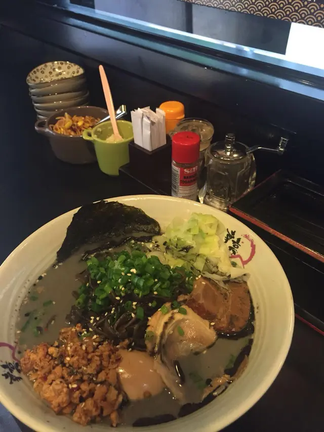 價錢對比地點同食物質素都還可以,但比佢好嘅大有人在。唔算有特色,配菜都係平時見開一類,木耳蔥一類,紫菜不算脆,湯底係平常貨色...我會比較想去下其他睇下有無驚喜...p.s.:點解呢一種拉麵鋪都咁鐘意加椰菜? 其實我好唔鐘意拉麵裡面有椰菜......但不得不提吧台哥哥們幾親切好有禮貌,所以要加分!查看更多