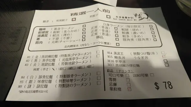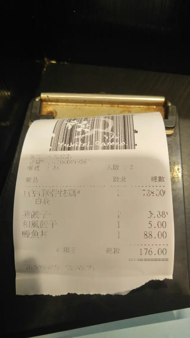 舖頭店內只有七至八個座位。可以選擇喺舖頭外,冇冷氣嘅地方坐,好有大排檔氣氛。由於當日落著大雨,加上天氣好熱,所以我都堅持排隊等店內有冷氣嘅位。不過店內都幾迫,要膊頭掂膊頭……(白) 豚骨拉麵湯底幾濃郁,麵有彈性,可以揀叉燒或者係角切豬肉。碗麵其實有一隻溏心蛋,但係個侍應俾漏咗,好彩我發現到,佢先後補番俾我。朋友叫咗一個饅魚飯,因為我對鰻魚麻麻地,所以無試到,但睇落個樣都唔差。根據下面張order單,拉麵同鰻魚飯都係$78,加五蚊可以多餃子一客(兩隻)及汽水,其實都幾抵。 但係張單就顯示,鰻魚飯要$88。 我問個侍應點解個價錢同order紙上面嘅價錢唔同。佢就話鰻魚飯係$88嘅, 我就同佢講成張order紙都搵唔到“$88”嘅字眼,佢係咁同我講唔好意思,不過都係收我$88。 其實$88食個鰻魚丼嚟計,價錢ok,我只係想溫馨提示佢改返好個價錢,唔好再誤導其他人…… 查看更多
