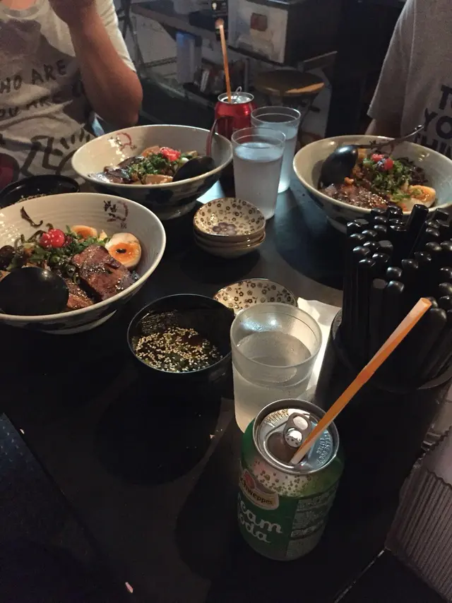 Counter其實只得幾個位⋯ 午餐時間,冇得坐counter,要坐後巷,摺枱摺櫈~ 睇住後巷d街喉呀,洗碗,等等⋯感覺真唔多好⋯ 冬天還好,夏天唔多妥⋯唯一好,播住日文歌!Menu ~朋友叫既黑亨拉麵。少少中伏既感覺⋯ 極普通。選了濃味,都係好淡味道⋯ 我既黑胡麻拉麵。選了角煮,算入味。但湯底好重味精⋯ 食完要不停飲水⋯加左做餐,有餃子同罐裝汽水。煎的還好,煮的就不要了⋯試過一次就算了~不會再食⋯這個價錢可以有好些的選擇~查看更多