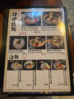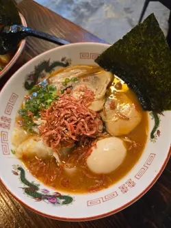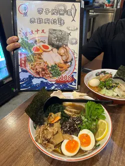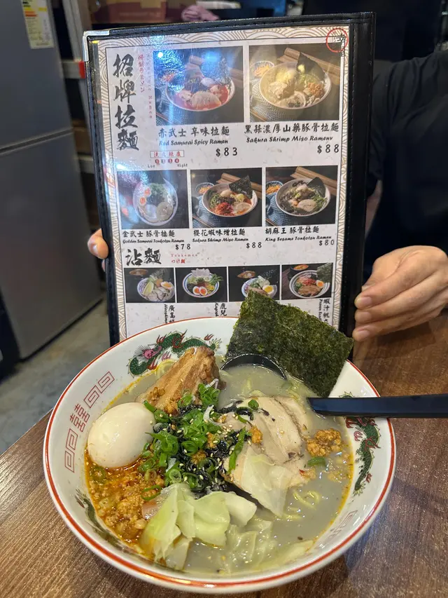 喺湾仔做完嘢,知道附近有间拉面店,一于入去返碗先。拉面店环境舒适,坐得舒服。有拉面有沾面,一于同同事各叫一碗。🍜 樱花虾味噌拉面一上枱就俾成座「樱花虾山」震撼到!汤底用赤味噌混虾头熬煮,橙红色汤汁稠到挂匙!面条咬落弹牙有麦香,最正系双豚肉叉烧,厚切腩肉慢煮到入口即化,薄切肩胛肉炙烧到焦边脆口,夹埋流心蛋黄同脆口木耳丝,非常滋味。🫕 鱼介豚骨沾面经常出现的话题,拉面vs沾面,倒不如各点一款比较一下。沾面汤底稠到可以挂企匙羹,鱼介嘅烟熏香撞豚骨嘅胶质。而沾面底属粗面,冰镇过上枱,咬落非常Q弹,夹一束浸落热辣辣汤汁3秒——挂汁力爆灯!另外,配料嘅慢煮叉烧腍到离谱,糖心蛋流汁捞汤更邪恶。🥢 小食- 冷豆腐:冻豆腐淋鲣鱼汁,面头洒上木鱼花,夹埋青瓜丝同葱花,非常清新。- 芝士年糕:流心芝士涌出嚟!外糯内流心嘅双重口感,记住趁热食,冻咗会变芝士橡胶波㗎!后感:食幸屋,真幸福。…查看更多