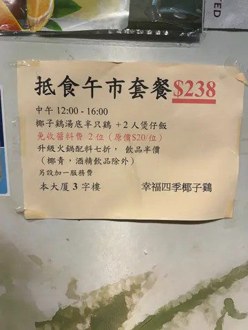 晚市 幸福四季椰子鸡 https://s.openrice.com/QrLT02ZbS00