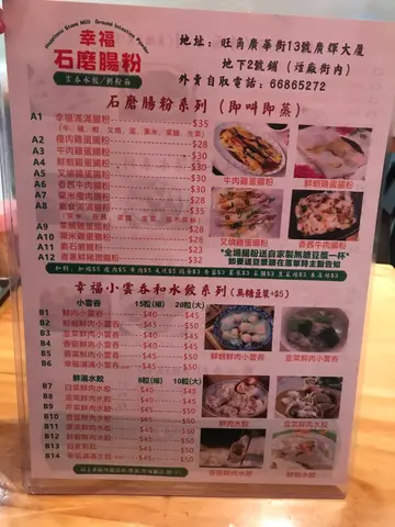 幸福石磨腸粉 (旺角) 网址: https://s.openrice.com/QrLS0hRiC00 地址: 香港旺角廣華街13號廣輝大廈地下2號舖 电话: +852 66865272