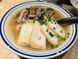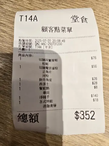 嚟紧介绍间好正嘅广面子,专做地道广式面食,喺香港好受欢迎㗎!佢哋嘅嘢食真系「平靓正」首先讲酥炸鱼皮,呢味嘢真系「脆卜卜」到不得了!鱼皮炸到金黄色,好似薯片咁脆,但系仲有阵阵鱼香。就咁食已经好过瘾,「咔嚓咔嚓」停唔到口。不过最正嘅食法系浸一浸汤或者点少少蚝油,外层微微变软,内里依然香脆,个口感层次即刻丰富晒。师傅话每日新鲜炸,唔会「腍啤啤」,保证你食上瘾!跟住到主角切腩四宝捞面,呢个简直系「大件夹抵食」!「切腩」系佢哋嘅招牌,用咗靓嘅牛腩,炆到超级「淋滑」,入口即化,仲有好浓嘅牛骨汤味。「四宝」通常有鱼蛋、云吞、牛筋同猪皮,样样都入味十足。捞面底更加系精髓,用咗全蛋面,煮到啱啱好,唔会太淋,捞埋特制酱汁同腩汁,每条面都挂满味道,食落「烟韧」有嚼劲。加埋两条青菜,平衡返啲油腻感,真系「冇得顶」!总之广面子呢两款嘢,一个香脆,一个浓郁,完全表现到广东面食嘅功夫。无论系赶时间定想慢慢叹,呢度都唔会令你失望。快啲去试下啦,包你话「返唔到转头」!…查看更多