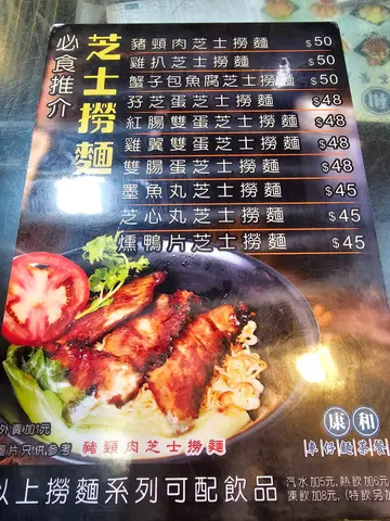 康和车仔面茶餐厅位于大围积富街,为街坊熟悉的小食式茶记,主打各类粉面、小菜与常见港式快餐组合。餐厅座位设于狭长格局之内,靠墙设有单人位,中央为双人至四人枱,运作模式以快进快出为主。是次用餐时间为平日下午约1时,店内七成满,点选餐点为鸡扒芝士捞面配冻柠茶,属热门组合。五分钟后主食送到,鸡扒芝士捞面为干捞形式,底层为即食面条,鸡扒预先香煎至微焦边缘,无骨处理,覆于面上,并有厚身芝士铺面。芝士集中于面中央位置,味道分布平均。桌面简洁,设有基本调味料(辣椒油、酱油)与纸巾,均为自取。现场座位翻枱节奏快,顾客多为一至两人同行,整体用餐时间约为20分钟,适合短时段补充餐点需求。餐点设计具高度识别度,鸡扒+芝士+即食捞面属视觉与操作感兼备之快餐形式…查看更多