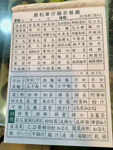 康和车仔面茶餐厅位于大围积富街,属港式街坊小食店类型,主营车仔面、快餐及茶饮,客群多为附近居民或午市顾客。店内空间设计紧凑,约设10至12张餐枱,翻枱速度快。此餐点组合为鸡扒芝士捞面配冻柠茶。饮品先送上,采用透明胶杯,内含三片柠檬片、固定比例冰块及甜度设定,吸管直饮,为常见茶记标准配置。主食于落单后5分钟内上枱,捞面为干身处理,面条底层为即食类型,鸡扒为香煎去骨版本,切片铺面,厚薄平均,芝士集中于面面中心区域,进食时需自行搅拌。酱汁预设,未附汤或小菜,视为独立主食使用。配餐附金属餐具,顾客可自取辣椒油或纸巾于墙侧。全程无需与楼面作额外互动,流程由点餐、上菜、用餐至结帐操作简明。用餐时间约为15至20分钟,顾客行为偏向速食型态。空间音量适中,墙上设有价目表与图片,菜单以套餐为主,组合清晰、定价稳定。餐点结构目的明确:鸡扒为蛋白来源,芝士提供饱足感,捞面为碳水基底,冻柠茶作为标准配饮,全属茶餐厅常见之午市功能性搭配。该店营运模式与空间密度匹配,用餐体验主打快速、熟悉与低沟通成本,属实用性导向的街坊茶记类型。…查看更多