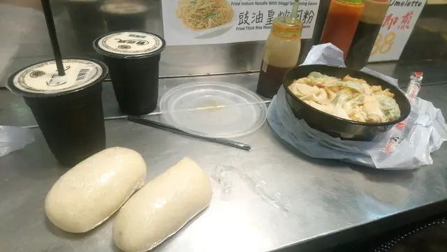 我同男朋友一個去買野食, 一個睇住兩個背囊😂上次我買, 今次到男朋友去買。每次買車仔麵條隊都好長,都要排好耐隊先買到。今次太熱唔想食好多野, 就每人試左粢飯豆漿餐, 男朋友就叫多碗車仔麵。栥飯暖暖哋, 啲飯調左味就算冇餡都唔會難食, 但餡嘅份量真係有啲少。豆漿夠凍, 豆味濃, 唔會太甜👍🏻👍🏻😋男朋友叫左瀨粉, 啲瀨粉好快吸晒湯, 有個哥哥見到佢冇晒湯就幫佢加滿返一碗😂十蚊四件煎釀三寶真係好吸引,下次要試😍查看更多