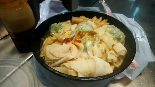 呢篇係小弟的第一篇食評,如果寫得唔好,請多多見諒。不過唔記得影相。今日放假,自己一個人,出去餐廳食好難搵位,所以就買外賣。聽屋企人講呢間車仔麵好正,所以就是試下。可能係下午茶時間, 去到有六七個人排隊,不過都快手,因為有4個呀姐負責賣野。呢間車仔麵嘅餸款式好多,大路嘅魚皮餃、豬皮、豬紅、牛腩、丸類都有 。除左呢d,吉烈豬扒都有。而我就叫作牛腩、吉烈豬扒同豬腸。返到屋企已經急不及待要試,餸果然好多。豬腸: 好入味,完全沒有騷味,又煮得好淋。下次必叫吉烈豬扒: 好大塊,佢會同你剪開,可惜,佢將塊吉烈豬扒放埋落D湯度,搞到塊吉烈豬扒已經唔脆,如果脆的話一定好正。另外,豬扒唔係好夠味,要自己加返D七味粉,咁就正晒。牛腩: 呢樣就麻麻地,煮得唔淋,又冇乜味,所以下次一定會再叫牛腩。湯底:都算ok,唔會太鹹,加入湯裡面嘅腩汁超正。整體來講,都算好食,又夠大份,食完勁飽。查看更多