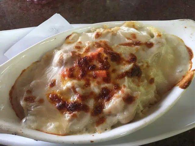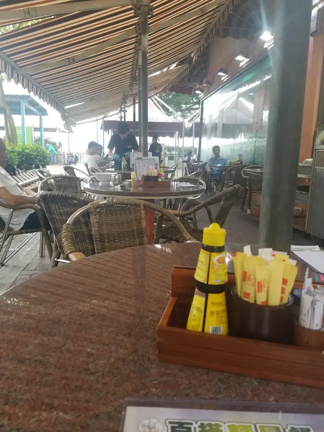 今天路過屯門碼頭,看見這家在公園邊上的餐廳,除了室內坐位,也有室外的。坐在室外是可以看到少量海境,更多的是公園境,正好今天陰雨天氣,吹自然風慢活的感覺也正好,果斷找了位子坐下,然後發現更多的是二手煙的氣息,因為前面正好是公園吸煙區,加上兩邊的食客也是煙民,都在吞雲吐霧,魚與熊掌永遠都是不可兼得的。這裡供應的食物就是一般茶餐廳的那些,餐牌上也沒什麼特別吸引我的食物,因為好久沒吃白汁焗的食物,正好這裡有忌廉汁焗雞飯,所以就點了。等了大約有20多分鐘,食物上來了,賣相是正常的,但份量就少得有點可憐。。。,飯底不知道有沒有一碗飯的量,而白汁里的雞肉應該有2塊,1塊半個麻將🀄️大,另1塊更小,另邊上的飯好些被焗乾,吃起來口感不好,份量本來就少,還要挑出被焗乾的飯,剩下幾匙梗就搞掂,味道我就覺得一般,不會有那種好吃的感覺,反而杯凍檸茶我覺得可以。總結44元一份餐,加杯凍檸茶加3,共47元,這種出品,雖說是下午茶,但也太讓我搖頭。查看更多