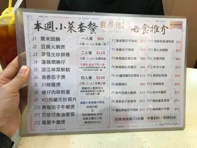 平時有時路過,但入去食,就第一次去食~😁😁晚餐時段去~ 同行友人說之前食過鐵板餐不錯,所以就去試埋小菜😀.XO 醬西蘭花炒斑片🥦🥦好味道:⭐️⭐️⭐️⭐️.黑椒茄子牛柳煲🍆🐮🍲好味道:⭐️⭐️⭐️⭐️因為這個餸菜真的很惹味,由其茄子,吸左個黑椒汁,好正~另外。。。呢個煲牛柳好多,好大片😲😲突然牛柳🐮仲多過茄子🍆~~反而想多d 茄子🍆🍆🤣😁.凍飲 +$3..友人說鐵板餐好抵食~再睇睇餐牌。。又係wo...相比起其他餐廳價錢,見"廚房佬"的較便宜~有機會去試下先😋😋查看更多