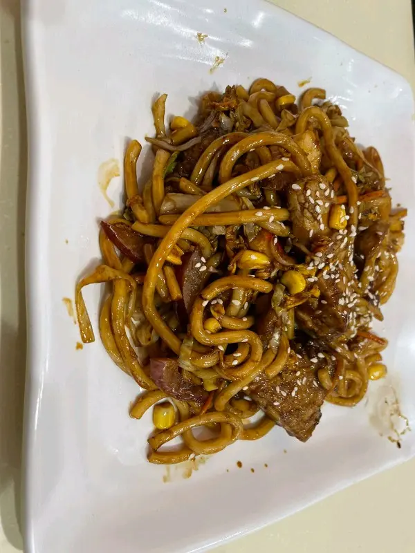 鐵板雞扒炒烏冬