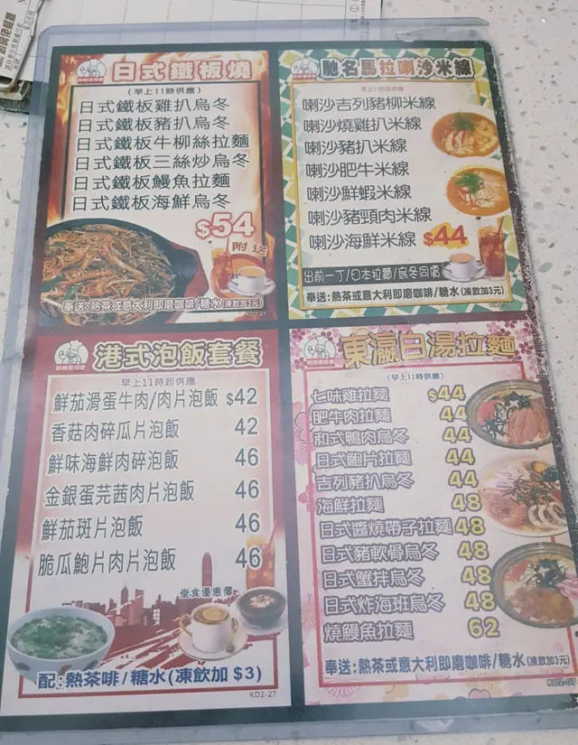 本來今日係想食雲南米線但店內人流太滿所以就走咗去隔離嘅廚房佬茶記日式鐵板牛柳絲拉麵用鐵板上“吱哩咋啦 很有睇頭 份量望落亦很多味道還可以但拉麵麵質整得過淋 完全沒有麵的彈性👌咖哩豬扒飯豬扒有炸或煎的選擇我就比較喜歡煎的本人喜歡較多汁的這裏的汁量一般但以價錢來說味道已經合格查看更多