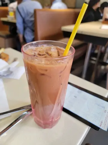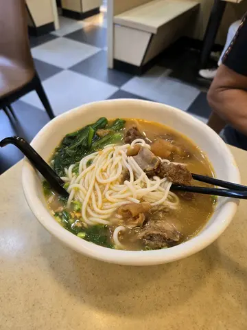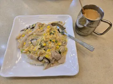 打波先嚟落雨,打完波今日同老友,因为避雨入咗一间茶记食个下午茶。茶记之中呢间都算干净要俾10分,但啲音乐就嘈咗啲好似身处祖国嘅怀抱。但唔影响食物质素。我哋叫咗牛腩米线,味道浓郁,牛腩软熟得嚟又唔柴,正!仲有冻柠茶,清新解渴。之后再嚟碗粟米鸡丝饭,鸡丝滑嫩,粟米甜得来好有口感。最后,唔可以唔提热斋啡,香浓可口,十分满足。推荐大家嚟试下!