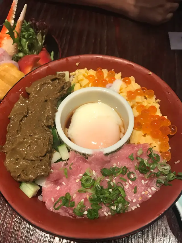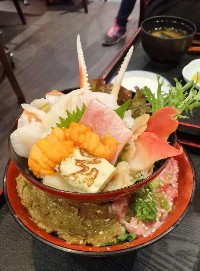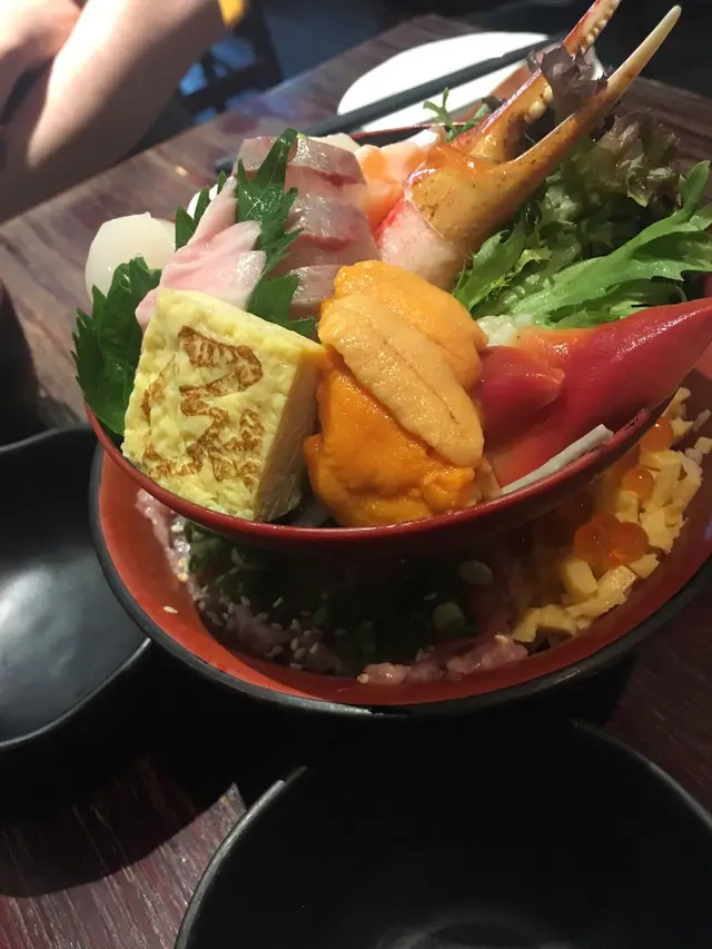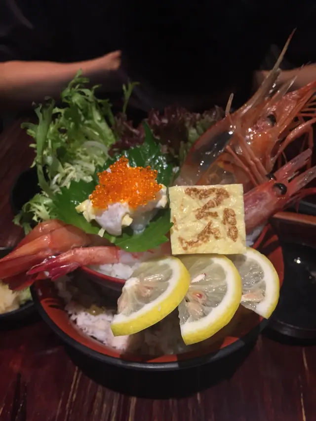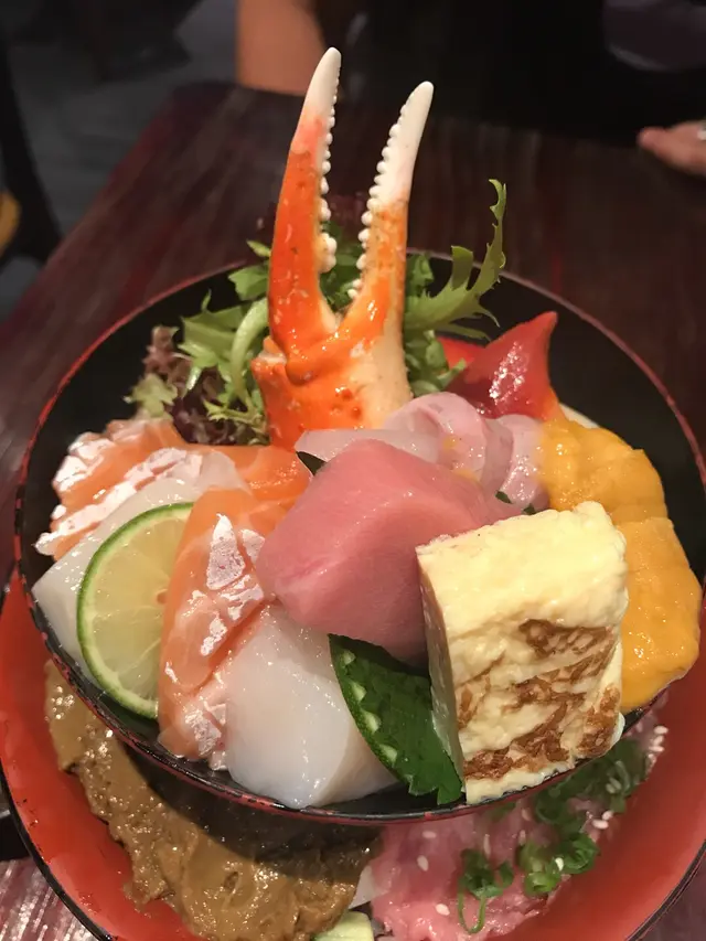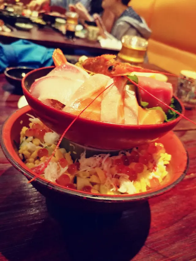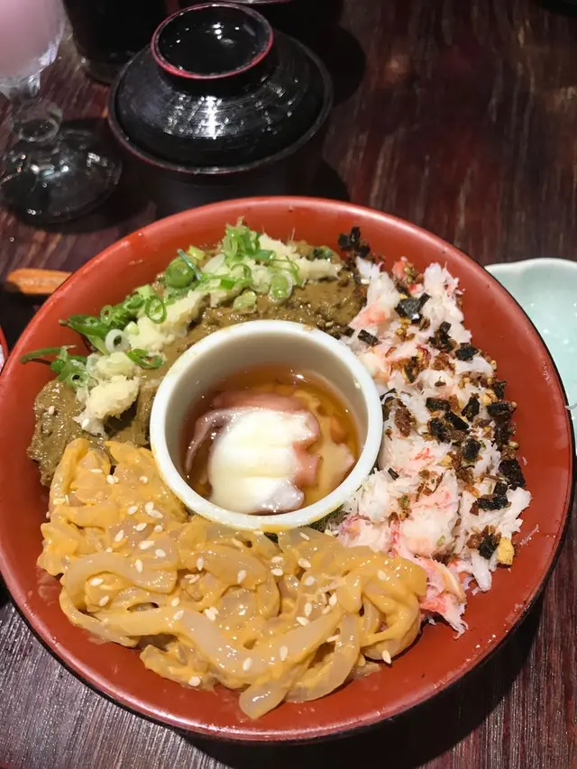 Crab crab 🦀 crab crab 🖤享丼丼分有上下兩層, 30cm diameter 既享丼丼裡面有d 咩呢??.出場氣勢的確響噹噹最亮眼既當然係隻松葉蟹, 但除此之外仲有多款刺身和前菜, 鋪滿上層.👉海膽豆腐豆腐滑溜 鋪滿海膽 互相襯托, 加上紫菜和芝麻粒, 味夾👉松葉蟹肉玉子燒蛋因為凍住食 蛋味未算突出, 附有松葉蟹肉和三文魚籽, 鮮甜之中又帶點鹹香👉刺身 各兩件池魚魚肉彈牙, 三文魚肥美, 八爪魚彈牙, 帶子鮮甜. 最鐘意帶子刺身既我覺得呢度既八爪魚都好食, 池魚味淡 雖然本應如此👉松葉蟹已預先拆件, 好細心. 蟹身充滿海水味道, 肉質有點鬆散 蟹膏都頗多, 蘸上蟹醋 鮮甜味道更加突出整體新鮮程度還可以, 但蟹肉蟹膏份量多, 好滿足👉店員會幫你拎走上層的間隔 然後注意力轉至到下層的飯底. 珍珠米飯煮得剛好, 佈滿 蟹籽 蟹肉 玉子粒, 中間一大片蟹膏, 稍稍帶點腥. 撈好吃一口, 鹹淡剛好 蟹膏味道亦唔會太濃烈 成個飯好香 好好食啊,不過如果你怕腥都可以撈少d 膏既 但我會建議跟返本來分配好既份量!.✌呢度仲有燒物, 叫左 燒煙肉露荀卷 同 燒冬菇串中上水準 有機會可以再試下其他燒物✌青檸香檳 熱情果香檳 香檳唔濃唔洗怕醉! 青檸比熱情果少甜, 熱情果香檳底有綠色既啫喱haha 個人覺得可以當普通果味飲品飲啊 另外仲有芒果香檳:)…查看更多