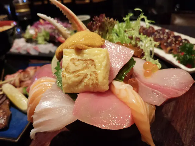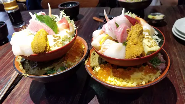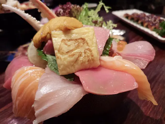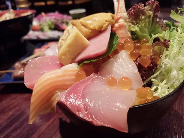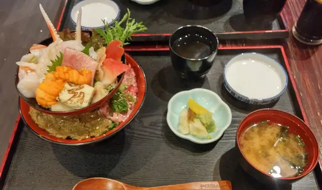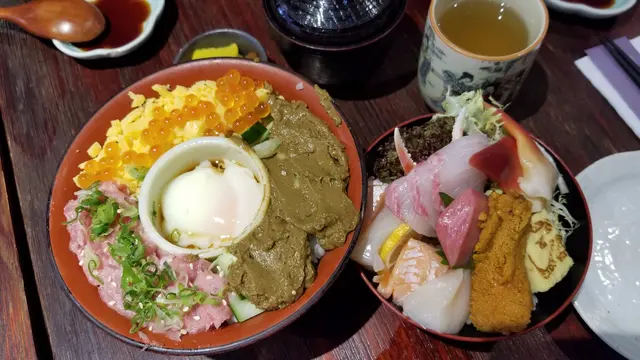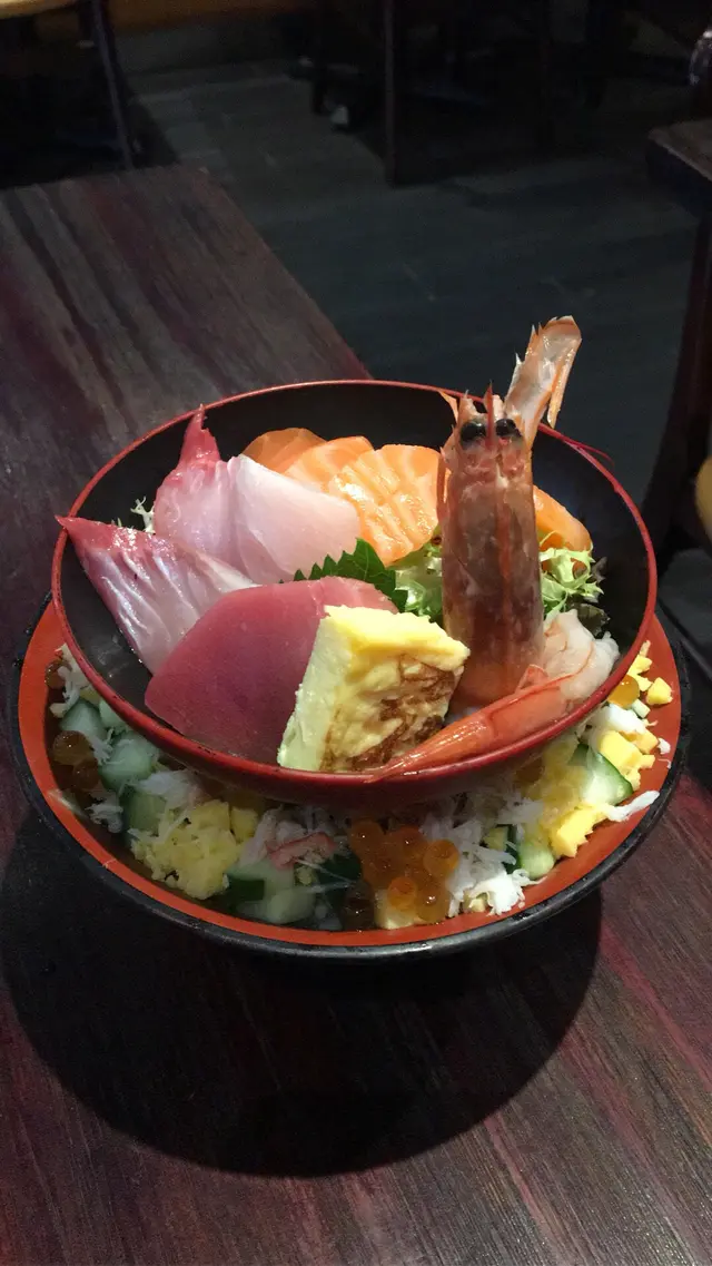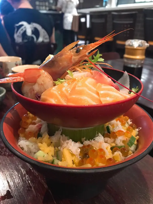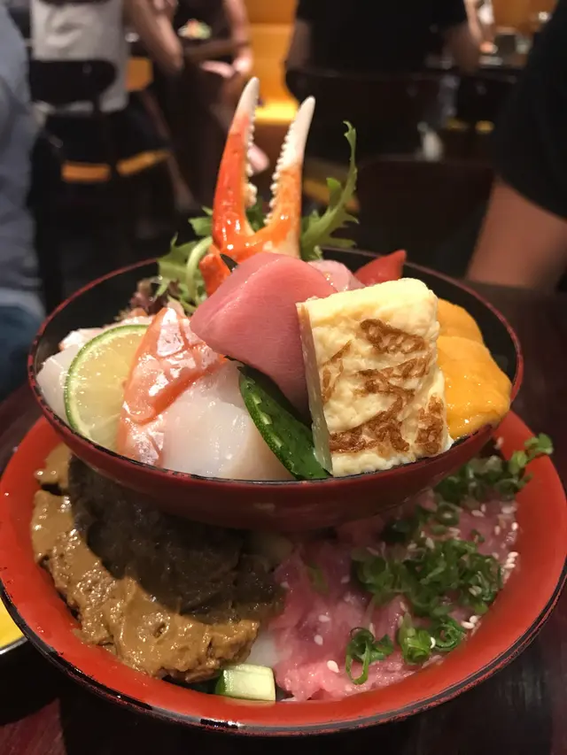 Crab crab 🦀 crab crab 🖤享丼丼分有上下兩層, 30cm diameter 既享丼丼裡面有d 咩呢??.出場氣勢的確響噹噹最亮眼既當然係隻松葉蟹, 但除此之外仲有多款刺身和前菜, 鋪滿上層.👉海膽豆腐豆腐滑溜 鋪滿海膽 互相襯托, 加上紫菜和芝麻粒, 味夾👉松葉蟹肉玉子燒蛋因為凍住食 蛋味未算突出, 附有松葉蟹肉和三文魚籽, 鮮甜之中又帶點鹹香👉刺身 各兩件池魚魚肉彈牙, 三文魚肥美, 八爪魚彈牙, 帶子鮮甜. 最鐘意帶子刺身既我覺得呢度既八爪魚都好食, 池魚味淡 雖然本應如此👉松葉蟹已預先拆件, 好細心. 蟹身充滿海水味道, 肉質有點鬆散 蟹膏都頗多, 蘸上蟹醋 鮮甜味道更加突出整體新鮮程度還可以, 但蟹肉蟹膏份量多, 好滿足👉店員會幫你拎走上層的間隔 然後注意力轉至到下層的飯底. 珍珠米飯煮得剛好, 佈滿 蟹籽 蟹肉 玉子粒, 中間一大片蟹膏, 稍稍帶點腥. 撈好吃一口, 鹹淡剛好 蟹膏味道亦唔會太濃烈 成個飯好香 好好食啊,不過如果你怕腥都可以撈少d 膏既 但我會建議跟返本來分配好既份量!.✌呢度仲有燒物, 叫左 燒煙肉露荀卷 同 燒冬菇串中上水準 有機會可以再試下其他燒物✌青檸香檳 熱情果香檳 香檳唔濃唔洗怕醉! 青檸比熱情果少甜, 熱情果香檳底有綠色既啫喱haha 個人覺得可以當普通果味飲品飲啊 另外仲有芒果香檳:)…查看更多