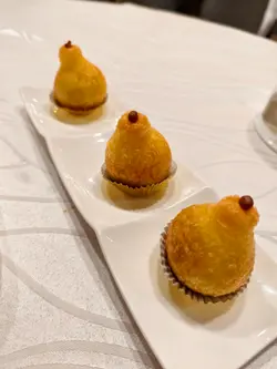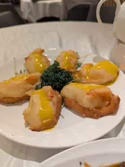 公子名菜蝦多士,必試!超厚超大的一件,多士經油炸後非常脆口,因為麵包吸油的關係,咬落去會滲出油份,非常邪惡。面頭豐滿嘅蝦肉夠彈牙。加入了酸甜嘅芒果醬汁,這碟招牌菜果然並非浪得虛名。