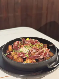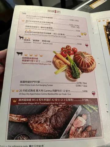 坐得都好舒服鲜蟹肉干邑龙虾汤 配 蒜蓉包 $128见到超多人推荐要饮龙虾汤而家升级咗仲加埋蟹肉每一啖都系满满嘅蟹肉浓郁嘅鲜味蒜蓉包焗到好香脆巴塞隆拿脆薯粒配流心蛋及辣肉肠粒 伴 36个月橡果饲黑毛猪火腿 $138脆薯粒焗得非常香脆因为盘仲系好热,将流心蛋捞匀之后会变成更脆口其余嘅中和返油腻感少见将辣肉肠切粒,口感好独特黑毛猪火腿浓郁嘅香味同口感招牌焗美国特级威灵顿牛柳9安士 $498成晚有超过一半嘅人都叫咗依道菜而食过就发现真系非常出色可以讲系香港食过最好食嘅威灵顿牛柳都唔过分