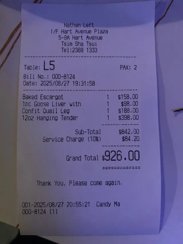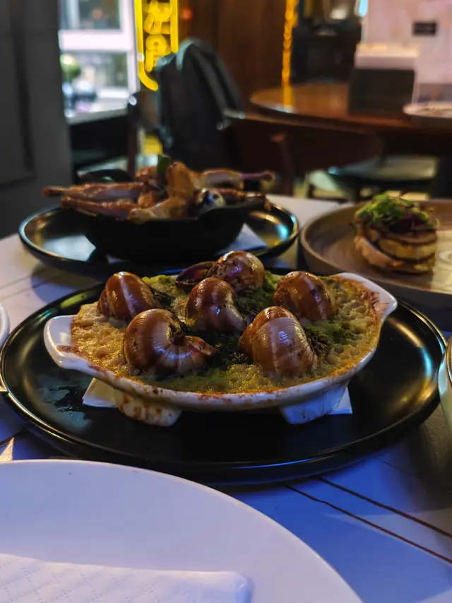 餐厅环境好靓好浪漫,适合同情侣黎庆祝节日,现场仲可以听live👍🏻👍🏻👍🏻餐牌选择唔少,有一系列小食、主菜、海鲜等,仲有好多酒品选择~轻煎法国顶级鹅肝伴焦糖凤梨|辣肉肠 $98推荐!!!😍😍😍超好食!鹅肝好厚好大块,煎到外层少少脆口,低层有焦糖凤梨,好新鲜,酸酸甜甜,同鹅肝好夹仲好开胃法式香草焗田螺配幼滑薯蓉 $158田螺好香嘅香草味,薯蓉好Creamy,入口即溶,配搭田螺一齐食,口感丰富,唔错!法国 Rougie 鹅油封鹌鹑腿 $188鹌鹑腿有成6只,好抵食,鹌鹑肉好嫩,咬落亦唔少肉汁,点少少盐食更好食,仲有鹌鹑蛋添啊🤩🤩🤩美国特级封门牛柳 12oz $398我哋叫咗七成熟,牛肉好厚,外层煎到少少浓,成功锁住入面嘅肉汁,就算七成熟啲肉都好嫩口,配菜好出色,好鲜甜,特别系个洋葱,好好食!!查看更多
