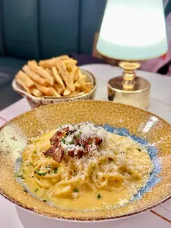 香港少见真系有live band嘅餐厅同埋见好多人都推荐食物饮品质素都好高就慕名而来餐厅有两层,主要用餐区系二楼上楼梯之后就见到闪令令嘅墙同埋餐厅logo好似亲身去到电影先见过嘅歌厅咁装修好复古好靓