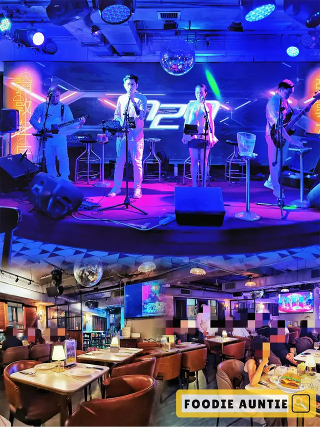香港少見真係有live band嘅餐廳同埋見好多人都推薦食物飲品質素都好高就慕名而來餐廳有兩層,主要用餐區係二樓上樓梯之後就見到閃令令嘅牆同埋餐廳logo好似親身去到電影先見過嘅歌廳咁裝修好復古好靚