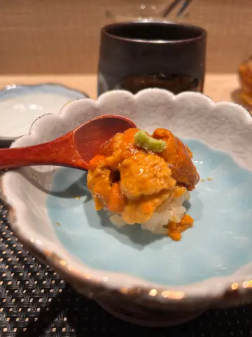 今日同公司同事收工之后去慰劳下努力工作既我哋,就过左去尖沙咀去试下Openrice 有好多好评既「彤」☺️餐前小食有饼干脆片同一盘脆鱼仔🐠饼干脆片同啲鱼仔好脆,完全唔油腻,真系食多几件都唔怕!主菜有澳洲鲍鱼,一板海胆同大拖罗等等!澳洲鲍鱼弹牙爽口,配以鲍鱼干酱,好好食!而海胆份量非常多之余,食落去感口感creamy又浓郁,唔苦唔腥,仲要入口即溶,味道相当鲜甜!来到重头戏大拖罗系我同同事至爱,系神级美食🤤脂肪分布平均,油香满满🤤