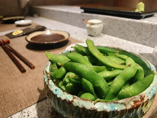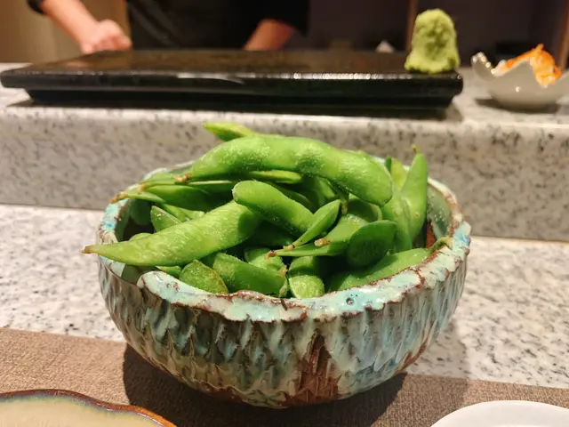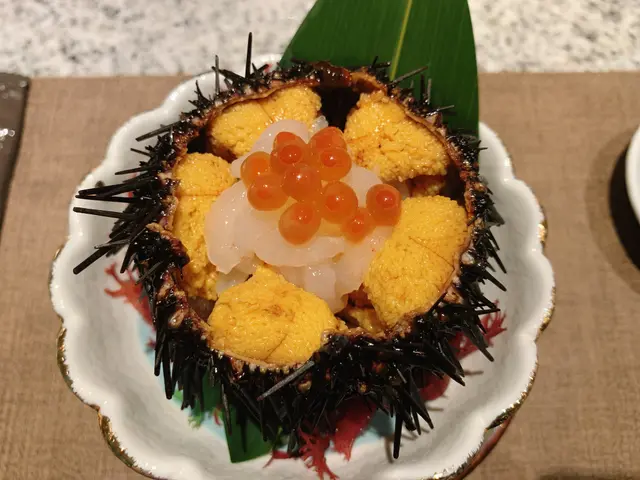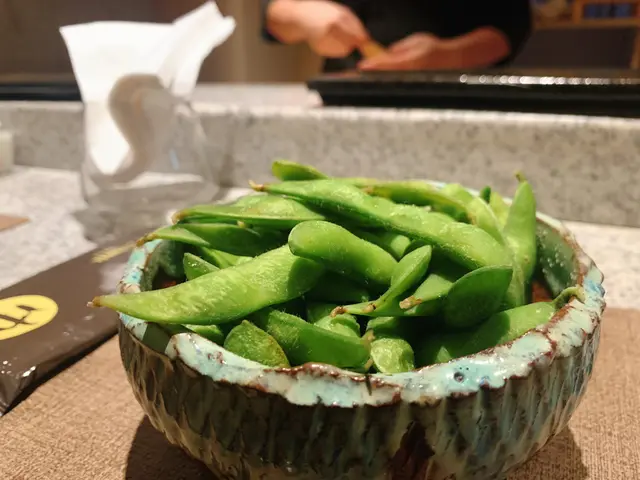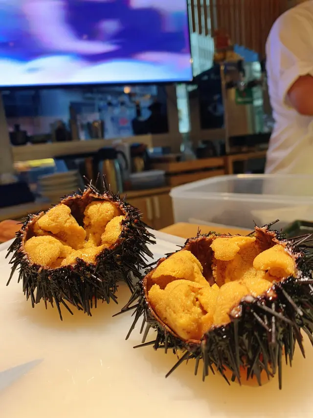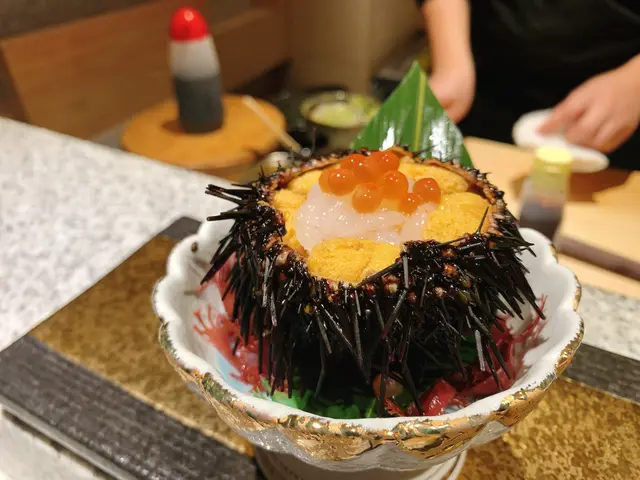 日本毛豆,每顆毛豆都渾圓飽滿,晶亮紮實,吃得出毛豆甜味👍🏻北海道厚岸蠔🦪,原隻生蠔肉質肥美,口感Creamy,金屬味和海水味不重,更能突顥它的鮮甜,有獨特的甜味🥰🥰,並散發濃濃蠔香🦪,留於齒頰間久久不散,青檸啫喱同埋柚子酸汁(自家製) 已經可以代替檸檬汁🍋底有日本紫蘇葉同埋日本海苔😋😋銀鱈魚BB ,滑而不膩,香味四溢,滋味無窮,加上面係黑松露,增加了高貴的感覺亦增加了香氣🥰旁邊的另一幫客人叫了海膽一板,我呢個大郷里梗係去八掛下啦,板海膽好靚,海膽肥美,聞落有海水香味,佢地仲好好人,請我食左啖添❤️查看更多