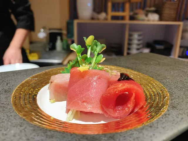 呢家餐廳嘅裝潢和氣氛好正,令我有種放鬆、悠閒嘅氛圍。餐廳嘅服務亦無可挑剔👍🏻👍🏻北海道帆立貝加上竹炭鹽,肉質細嫩,清甜爽滑再加埋竹炭鹽佢嘅口感吾係死咸個啲,可提升食材味美。😋鱈魚乾香脆可口,吾會整到好硬,加埋杯清酒,爽yy 🥹加分👍🏻👍🏻最後要話比大家聽,一樣令我食到返尋味嘅一樣食品,佢就係赤身加海苔醬,中拖羅加蘿蔔苗,大拖羅加Wasabi根部。同你地講 呢樣真係要試,一定食完會有同我一樣嘅感覺,佢好特別,啲配料同埋啲食材夾埋真係好襯,話俾你聽我從來都未食過Wasabi根部,食完真係令我很驚訝, 香氣溫潤,完全唔嗆,幫我講個真係好得意。總括嚟講呢間餐廳真係臥虎藏龍,完全係會令我長期都想去食嘅餐廳,好多嘢都好好食😋查看更多