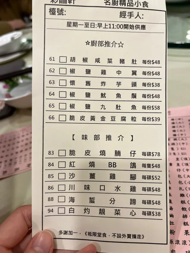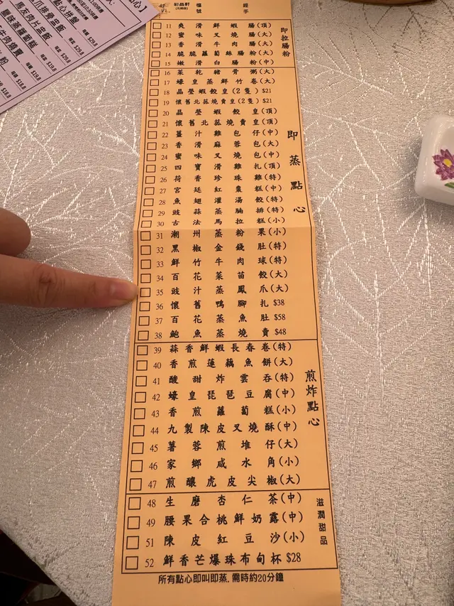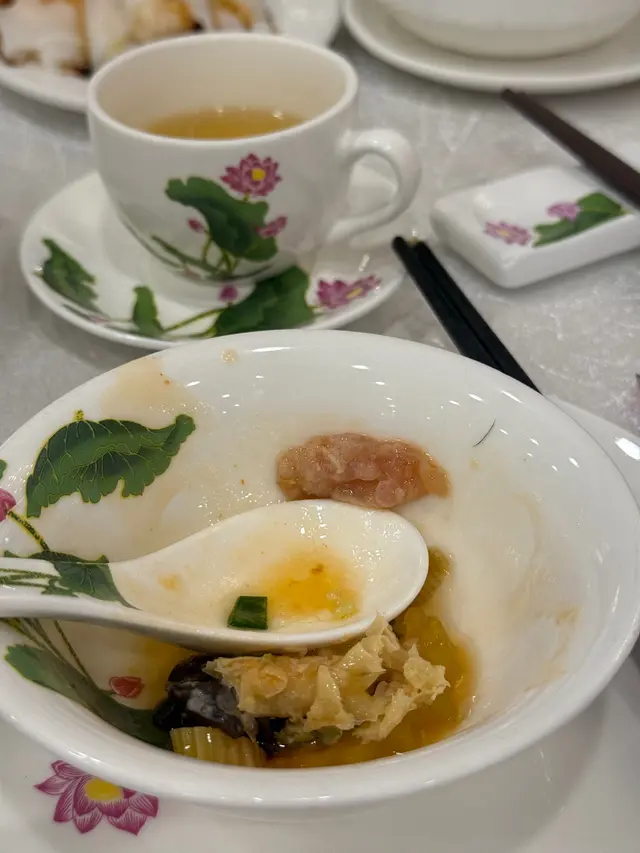 點心好食,而家啲茶樓多數預制點心難食到嘔,呢間係自製坐得舒適,服務週到週末與朋友來到這家點心店,品嚐了幾款經典美點,每一樣都製作得非常出色,讓人相當滿足。首先要大力推薦的是酥炸魷魚鬚。這道菜的表現堪稱驚豔,可能是我至今食過最好食的魷魚鬚!它的粉漿炸得極致鬆脆,一咬下去便能感受到那份輕盈的脆口,而內裡的魷魚鬚卻依然保持軟熟、彈牙的口感。外層酥脆、內裡軟嫩的對比掌握得恰到好處,火候控制得爐火純青,讓人一條接一條停不下來。旁邊配的醬油只是錦上添花,即使淨食也滋味十足。接著是香氣四溢的鼓汁蒸牛肚(或稱蜂巢牛肚)。牛肚厚實,處理得乾淨,蒸煮得入味又軟腍,嚼勁適中。濃郁的豆豉醬汁緊緊包裹著牛肚的每一個皺摺,鹹香微辣,非常下飯(或下茶)。頂上鮮紅的辣椒片不僅點綴了色彩,也帶來一絲清新的刺激感。再來是蜂巢糕(或稱芋角/芋泥酥)。雖然在食評中提到「旺角」二字,但我相信這應該是指芋角吧?它外觀呈現出金黃色的「蜂巢」狀,非常鬆脆可口。雖然你提到它「有少少油」,但這也正是炸物的風味所在。最關鍵的是,它內裡的芋泥餡料非常creamy,口感細膩柔滑,與外面那層輕盈酥脆的網狀外殼形成了美妙的層次對比。香甜的芋泥餡在口中融化,讓人感到幸福。最後,雞札用,份量十足,腐皮軟滑,內餡有芋頭、香菇和肉丸等豐富的材料,吸收了底下的清甜汁液,味道鮮甜。總體來說,這頓點心體驗相當高水準,每款點心都各有特色,製作團隊對火候和口感的掌握十分精準,特別是酥炸魷魚鬚的表現簡直是出乎意料的驚喜。如果你是點心愛好者,強烈建議來試試。…查看更多
