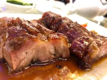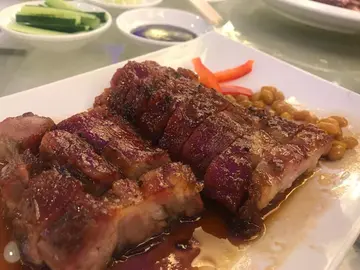 <晚饭小菜之选>虽然大埔呢间彩福已经开咗好一段日子,但作为土生土长既大埔人,我地都系第一次黎食野。入到酒楼,新装修既环境好新净,好光猛,感觉唔错。菜牌有好多小菜,烧味,套餐组合。野食方面,我地点咗个片皮鸭二食,因为平时比较少机会食到。烧鸭原只黎到我地面前,服务员即场将烧鸭皮一片一片地切岀。剩余嘅就会用来制作凉瓜炆鸭件。片皮鸭配埋酱同京葱卷起一齐食,皮连著一少层鸭肉,非常juicy 又美味。另外比较喜欢嘅菜肴系怀旧金奖叉烧,一向都好钟意食叉烧,但唔系度度都整得好食。呢度整得几有水准,香口之余,肥瘦均匀,酱汁好味又够多。总体来说,几款小菜都颇有水准,下次放假又可以同屋企人黎饮下茶,试埋呢度嘅点心睇下系咪都系咁得先🤗🤗…查看更多