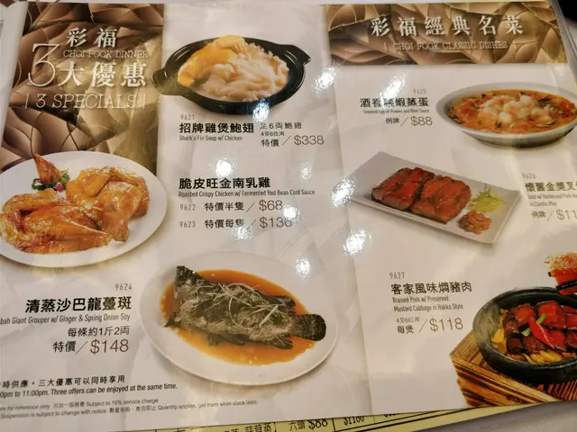 <晚飯小菜之選>雖然大埔呢間彩福已經開咗好一段日子,但作為土生土長既大埔人,我地都係第一次黎食野。入到酒樓,新裝修既環境好新淨,好光猛,感覺唔錯。菜牌有好多小菜,燒味,套餐組合。野食方面,我地點咗個片皮鴨二食,因為平時比較少機會食到。燒鴨原隻黎到我地面前,服務員即場將燒鴨皮一片一片地切岀。剩餘嘅就會用來製作涼瓜炆鴨件。片皮鴨配埋醬同京葱捲起一齊食,皮連著一少層鴨肉,非常juicy 又美味。另外比較喜歡嘅菜餚係懷舊金獎叉燒,一向都好鍾意食叉燒,但唔係度度都整得好食。呢度整得幾有水準,香口之餘,肥瘦均勻,醬汁好味又夠多。總體來說,幾款小菜都頗有水準,下次放假又可以同屋企人黎飲下茶,試埋呢度嘅點心睇下係咪都係咁得先🤗🤗…查看更多
