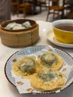 喜歡的話記得like & follow我喔♥位於將軍澳的DHYC Dimsum,這家新派點心店是我們的愛店!名字取自粵語「得閒飲茶」,是米芝蓮推介的「益新美食館」姊妹店,專注於創新點心,還提供180度的無敵海景!更難得的是,這裡是寵物友善的茶樓,可以帶著毛孩一起享受美好時光~最有驚喜是蟹肉大良炒鮮奶 ($148) !🦀🥛 奶香濃郁,滑溜的鮮奶蛋白與蟹肉完美結合,口感幼滑,還可以加點醋提鮮味!蒜蓉粉絲蒸鮮魷 ($55) 鮮魷爽口彈牙,粉絲吸滿了魷魚的鮮味和蒜香!韮王鮮蝦腸 ($55) 和 蝦餃 ($42) 都是使用新鮮蝦製作,有誠意!🦐瑤柱蛋白炒飯 ($128) 炒得粒粒分明!📍DHYC Dimsum Restaurant將軍澳唐俊街23號Monterey Place1樓2A號舖
