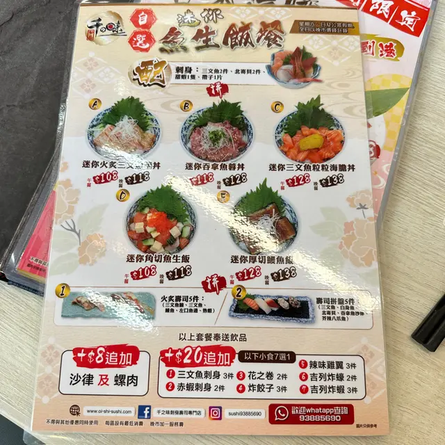 去咗試千之味嘅純壽司放題$198 /1人 +$78升級 任食拖羅、海膽壽司.舖頭得三張枱,所以記得book位.開頭見有啲人話舊好大舊.. 食落都ok 同平時就咁叫壽司差唔多size軍艦唔建議一次叫太多 因為啲紫菜會淋.海膽好食過好多放題嘅好多而且份量唔會好少!.另外海膽花之戀 舊飯好似無咁大 .鍾意食三文魚嘅可以叫呢個代替海膽壽司 🤣🤣 可能會無咁飽。.佢另外仲會有少少小食.飲品都有啲紙包飲品同汽水任飲.係個冷氣有啲凍. 食咗一個鐘鬆啲就頂唔順要走啦..呢個價錢嚟講其實都幾抵食,有大拖中拖海膽,冇咩投訴啦!…查看更多