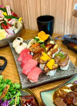 最近同朋友慶生,專登揀咗呢間位於天后的放題店,貪佢係區內少有嘅放題選擇,而且提供長達210分鐘的用餐時間,可以慢慢食唔使趕,絕對係gathering首選!如果6人以上訂座,更可以安排包房,私隱度十足。由於餐檯不多,所以好快滿座,建議一定要先訂位!餐廳收費分為成人$328-$388及小童$188,建議加$198升級至尊貴套餐,即可任食海膽、藍鰭吞拿魚系列及鵝肝等高級食材,性價比相當高。而家仲有「放題生日優惠」,全單九折之外,更送贈迷你壽司蛋糕,有儀式感又唔使另外買生日蛋糕,慳錢又抵食!刺身必點清單:大拖羅油香滿溢、入口即化;中拖羅油脂比例平衡;海膽刺身新鮮鮮甜、口感Creamy;甜蝦同帶子同樣鮮甜爽口,值得Encore!長腳蟹更是回本之選,肉質都幾飽滿,放題少見;象拔蚌清爽鮮美,其他如油甘魚、劍魚腩同磯煮鮑魚質素亦相當高。壽司|手卷推薦:蜜香炙燒和牛壽司及魚子醬炙燒和牛壽司,和牛肉質柔嫩多汁;魚子醬海膽壽司口感豐富;焦糖鵝肝壽司同芒果鵝肝壽司,鵝肝外脆內Creamy,配芒果更顯清新;海膽花之卷料多澎湃,一啖入口超滿足。炸物即叫即炸:炸蠔、炸蝦、炸魷魚鬚同芝麻雞翼全部熱辣辣上枱,香脆可口,火候控制得恰到好處。串燒及煮物:鹽燒雞軟骨串焦脆有嚼勁;蒲燒鰻魚肉厚無骨,醬汁香甜;燒蠔同燒扇貝極力推介!煮物方面,野菜牛肉鍋湯底清甜、牛肉嫩滑,汁煮牛舌(期間限定)軟稔入味,作為收尾之選非常適合。自助區提供無限量飲品同甜品之外,每位客人亦可自選一杯自家制雪糕想甜嚐甜,我揀咗焦糖開心果同燉蛋雪糕,另外還有雪米糍供應,為豐富的一餐畫上完美句號。…查看更多
